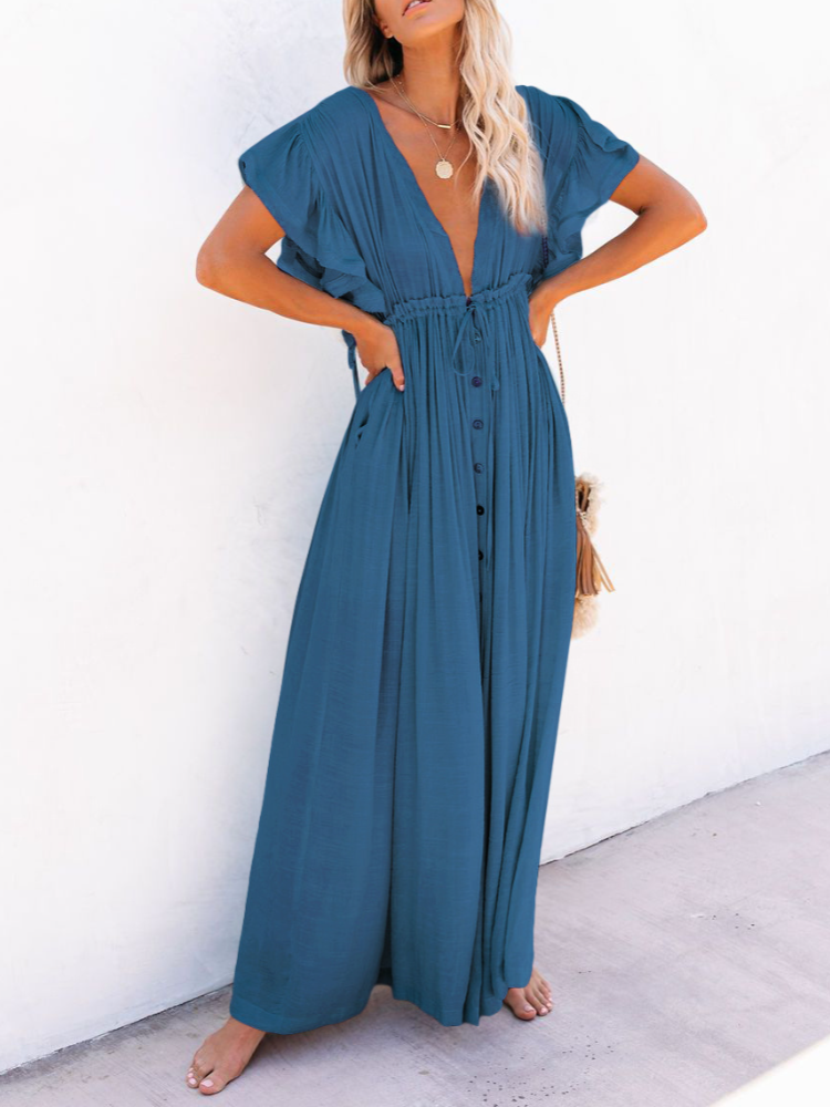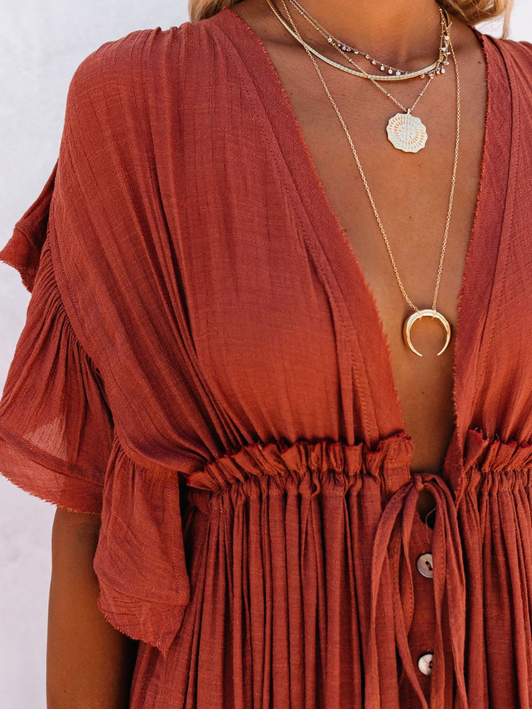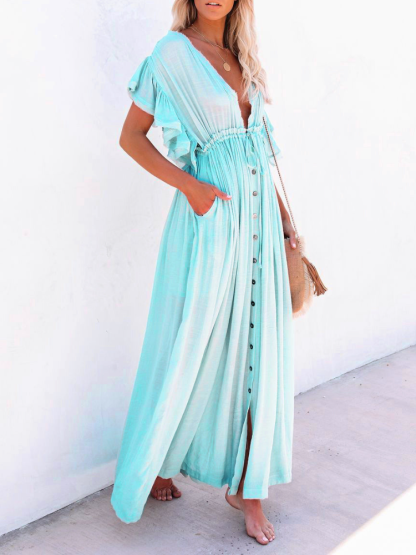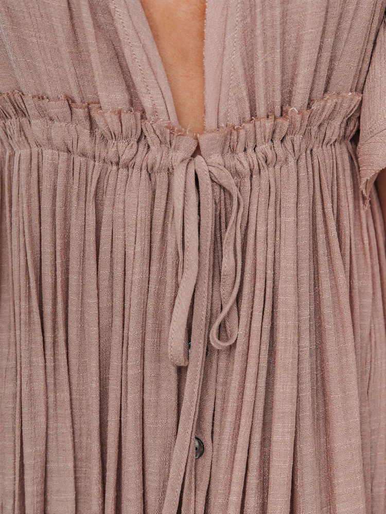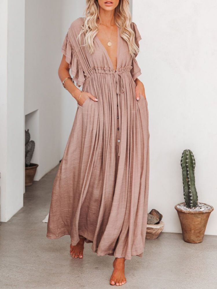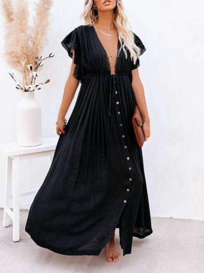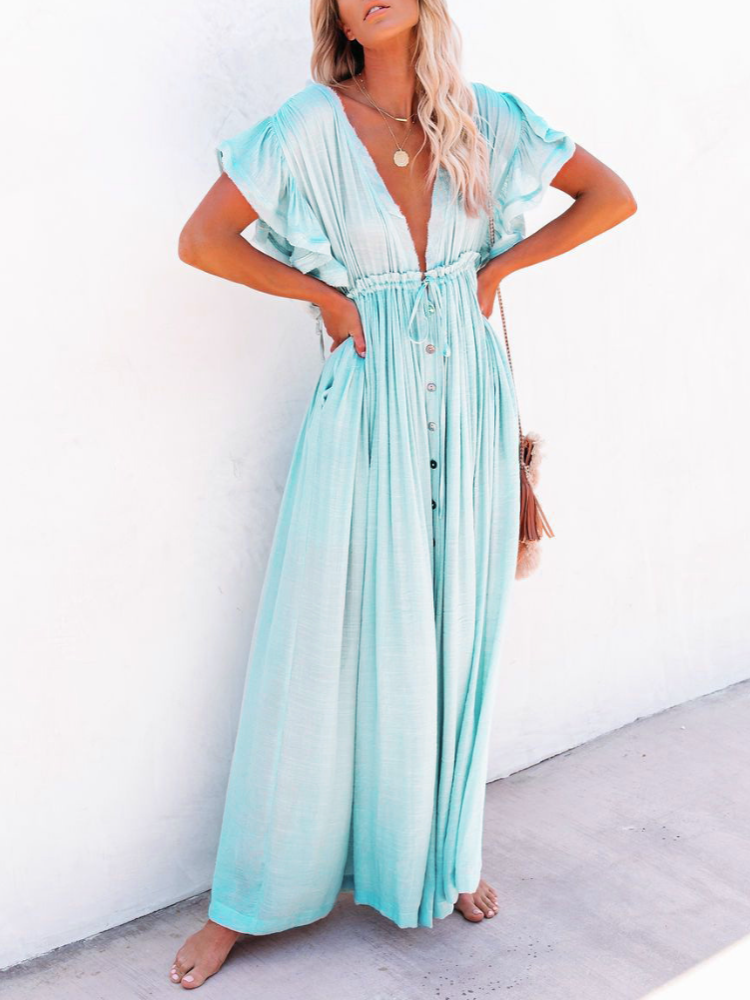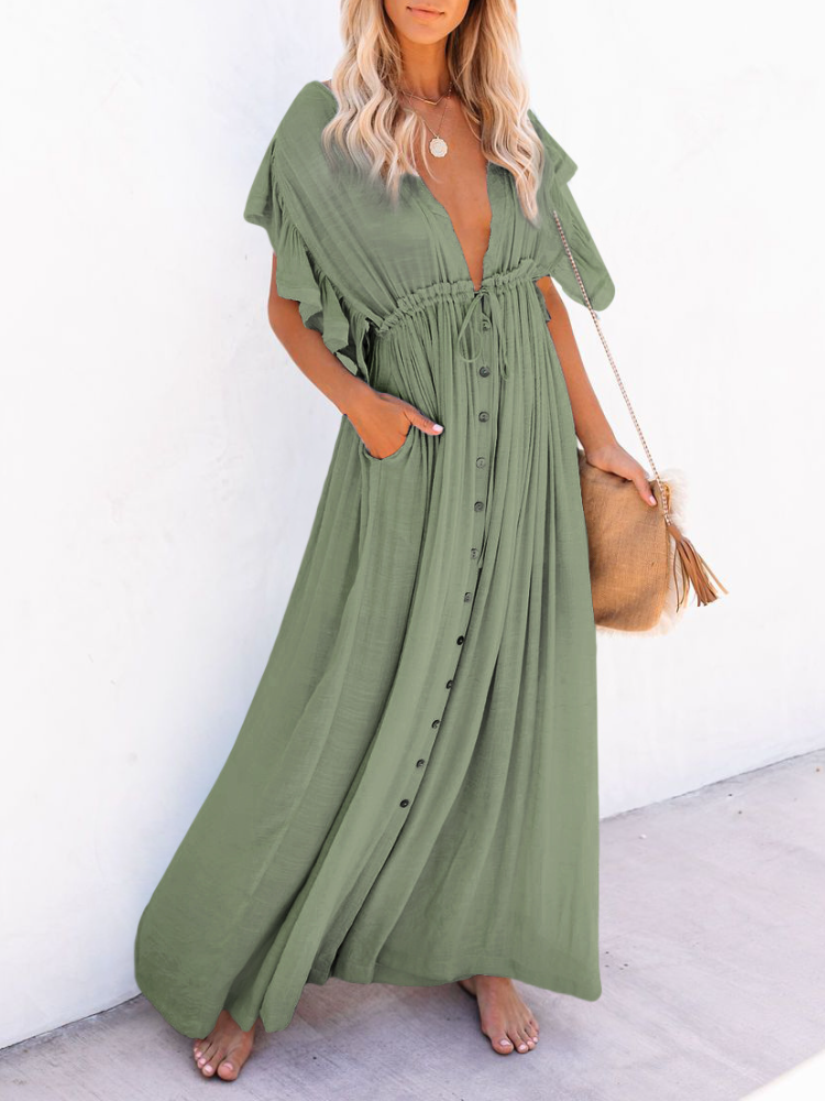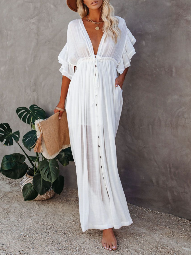 Bamboo Waist Rope Kaftan Long Dress Cardigan Holiday Beach Sun-protective Long Dress