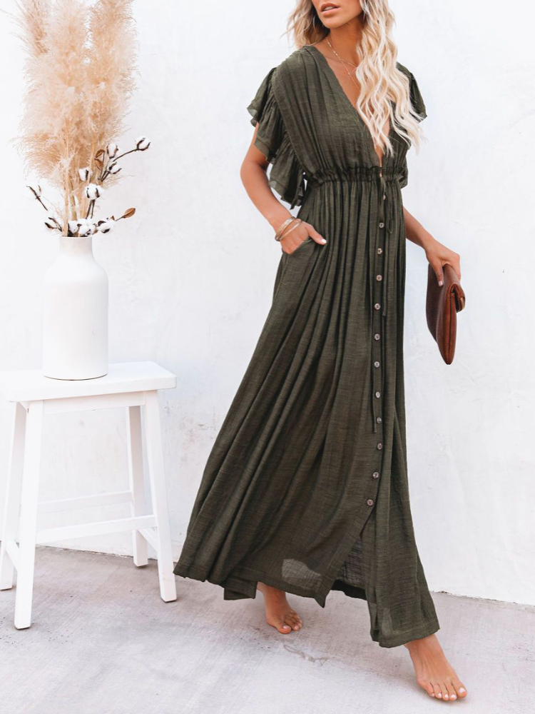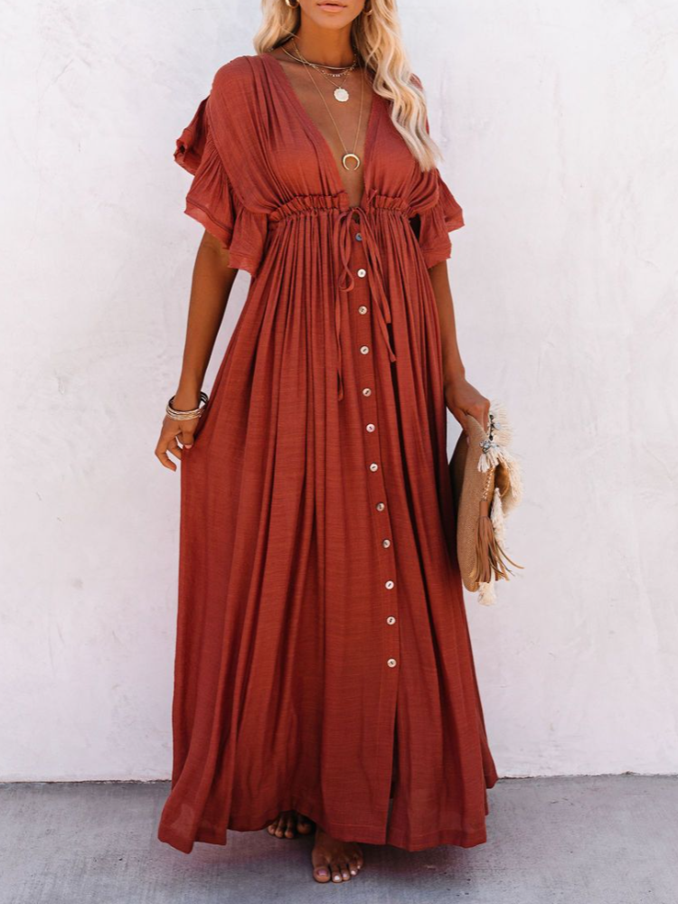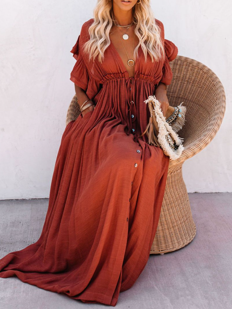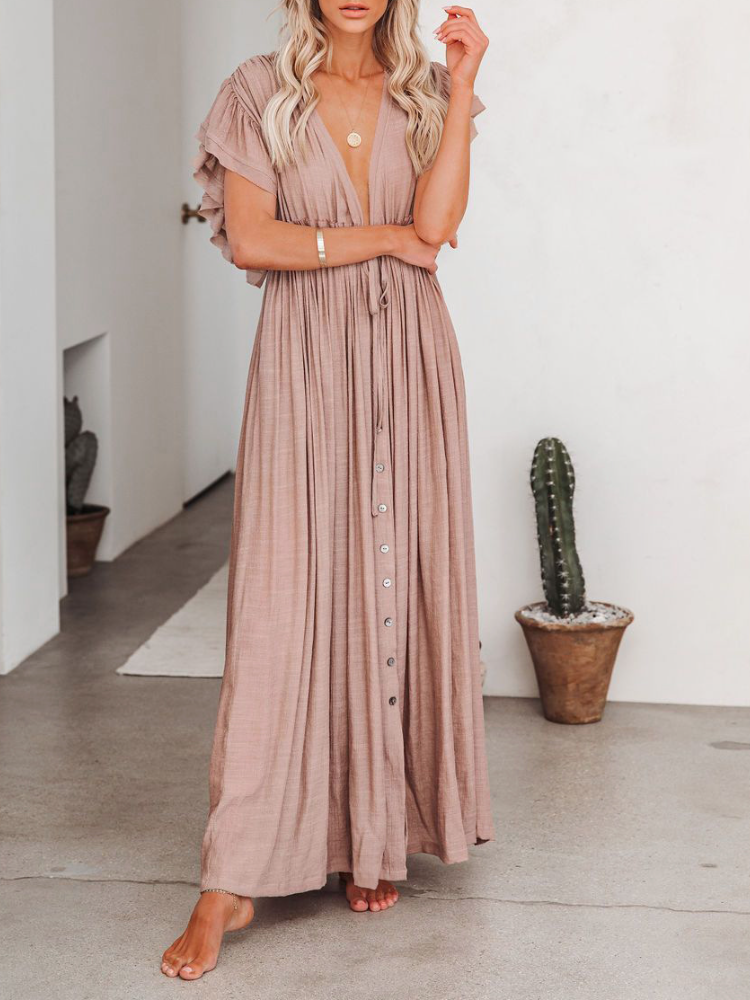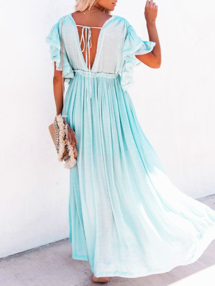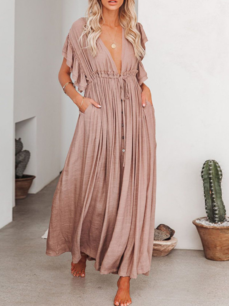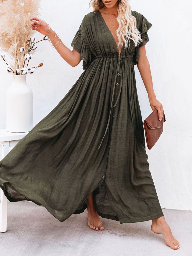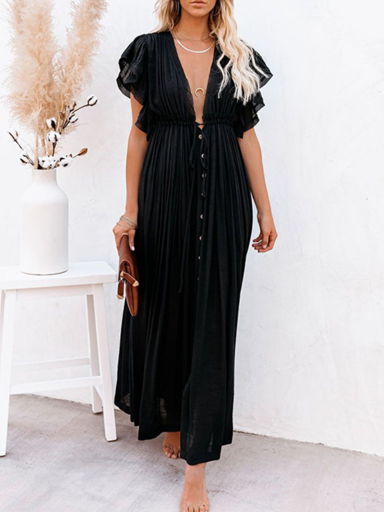 Bamboo Waist Rope Kaftan Long Dress Cardigan Holiday Beach Sun-protective Long Dress
