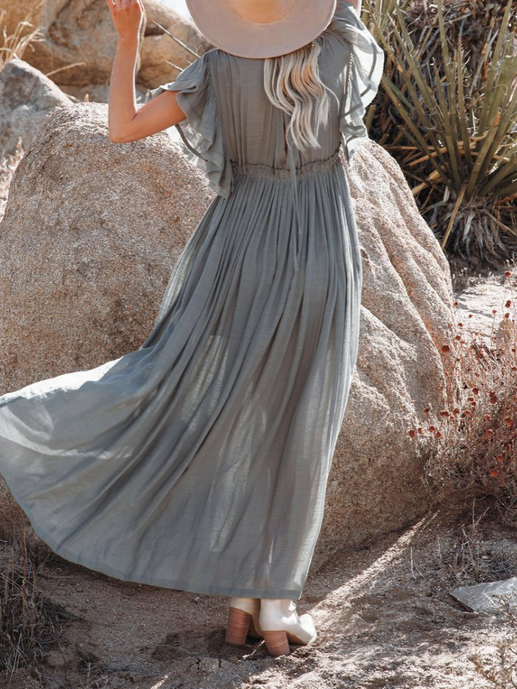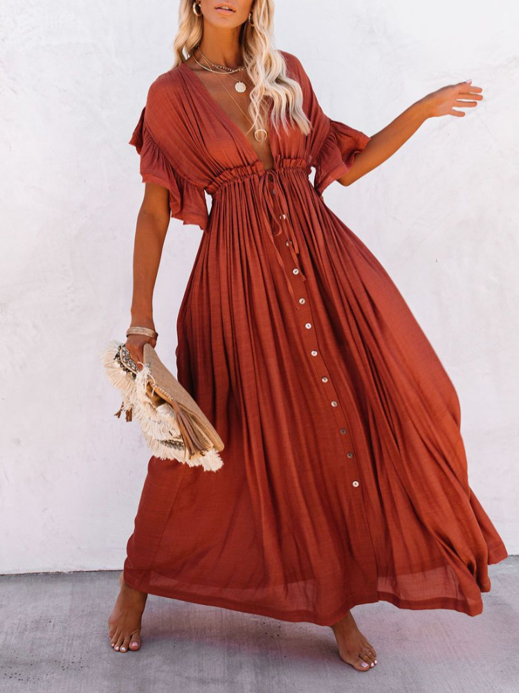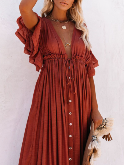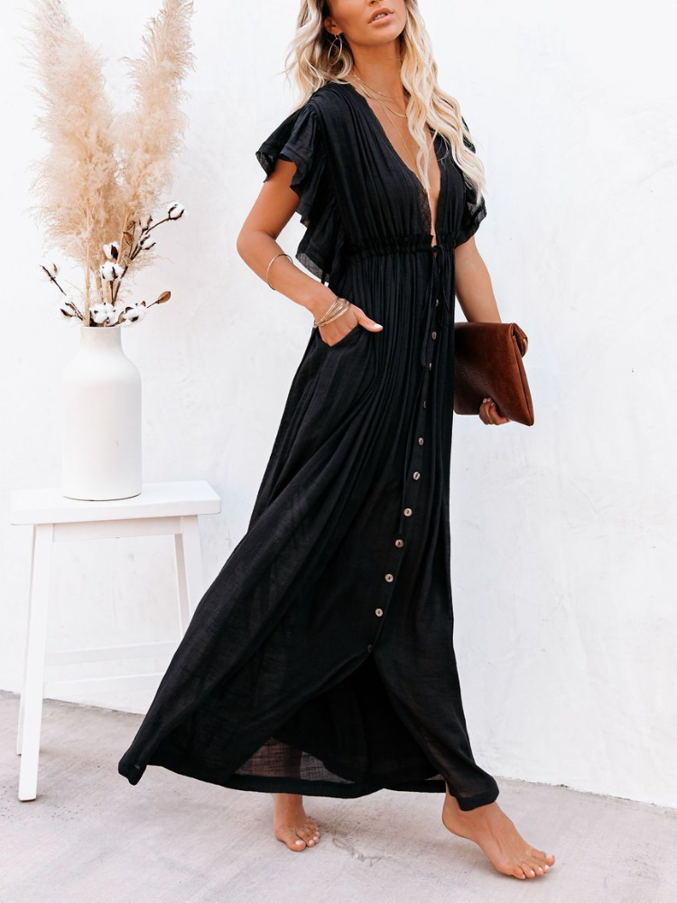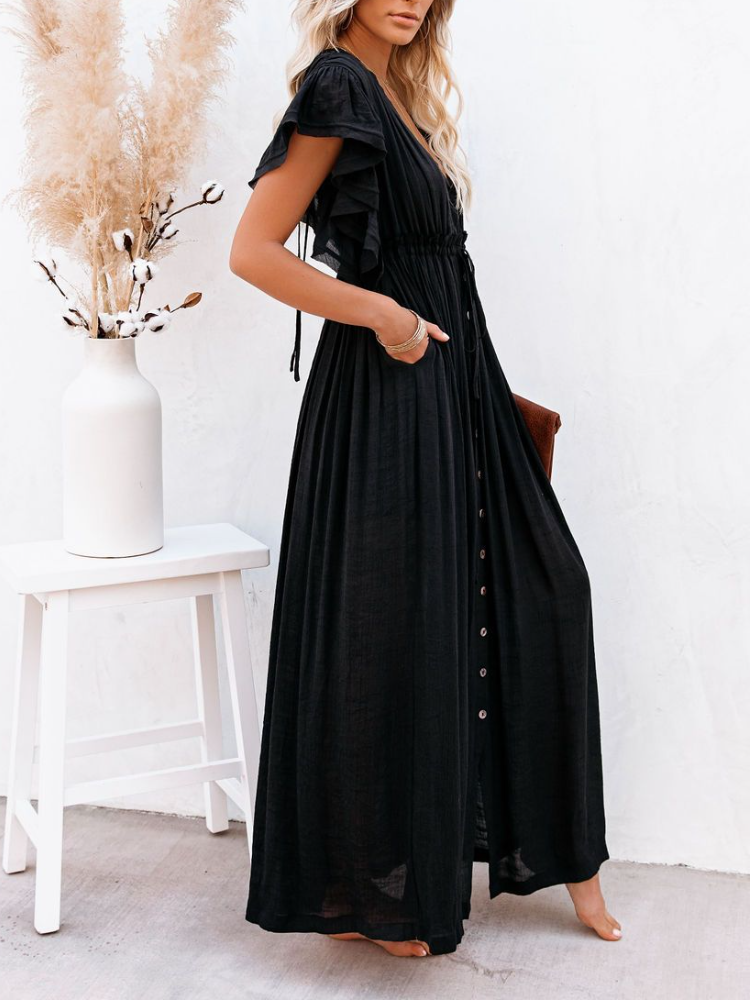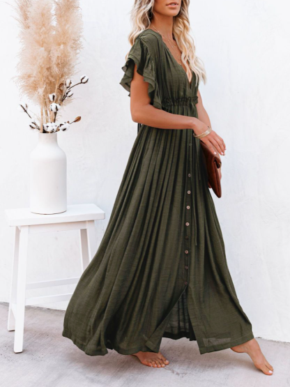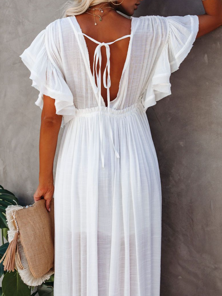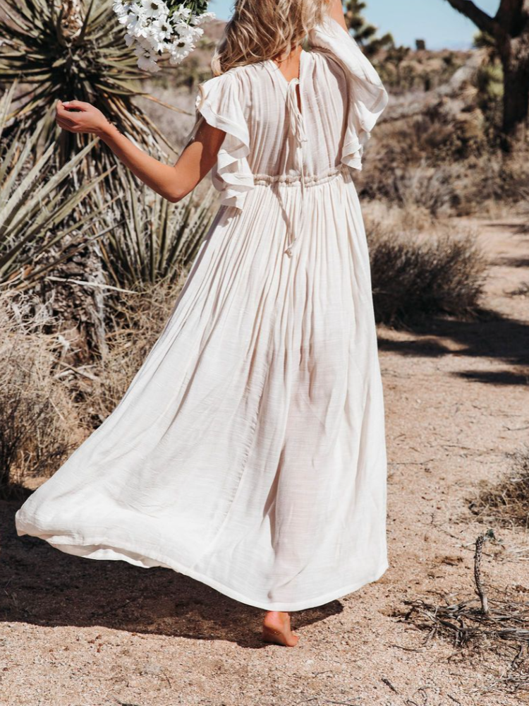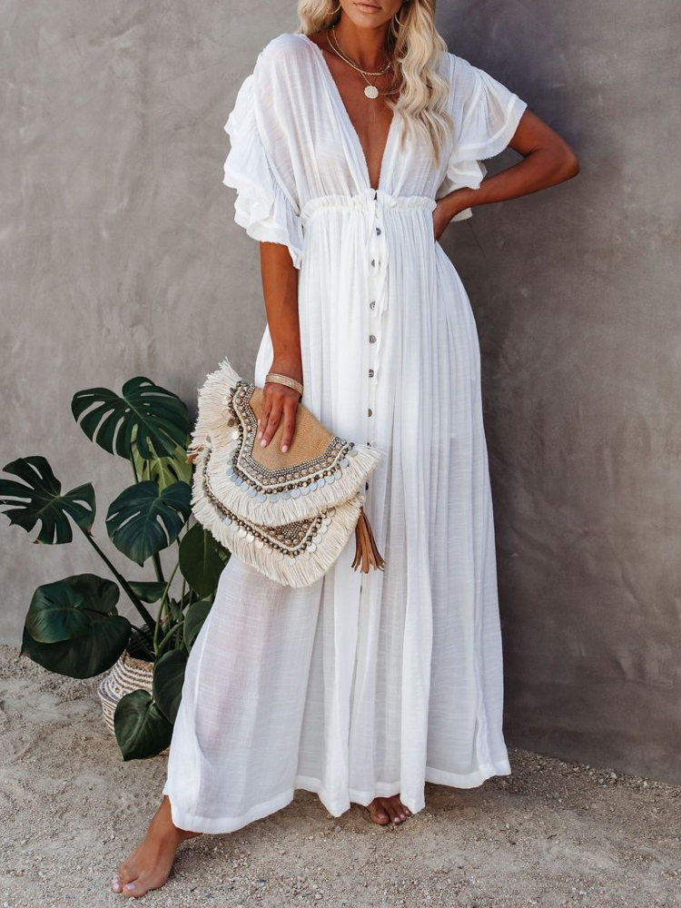 Bamboo Waist Rope Kaftan Long Dress Cardigan Holiday Beach Sun-protective Long Dress