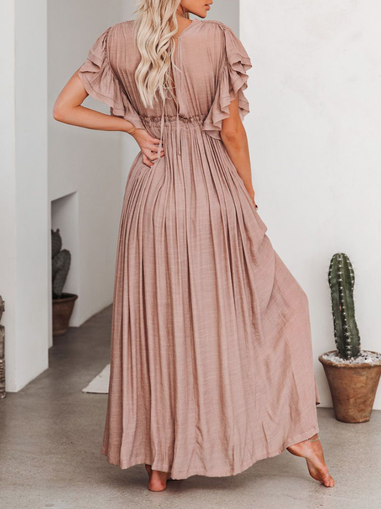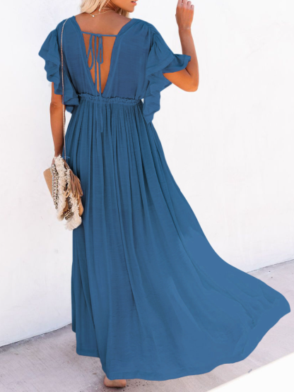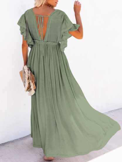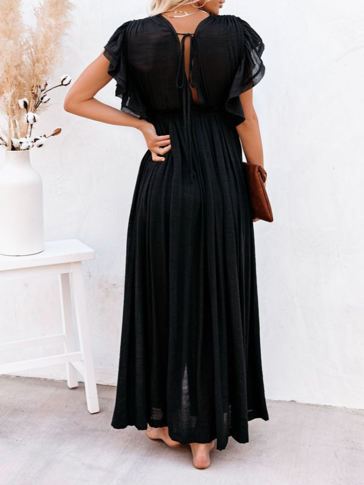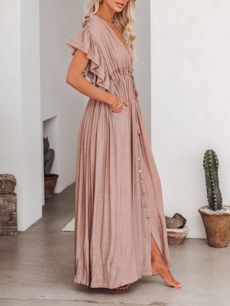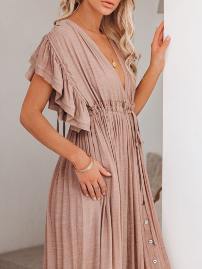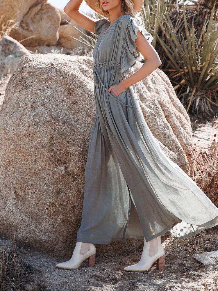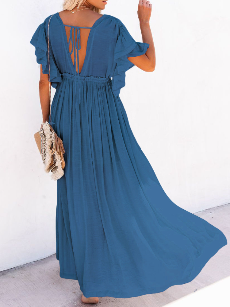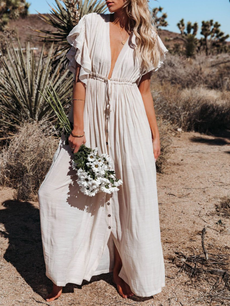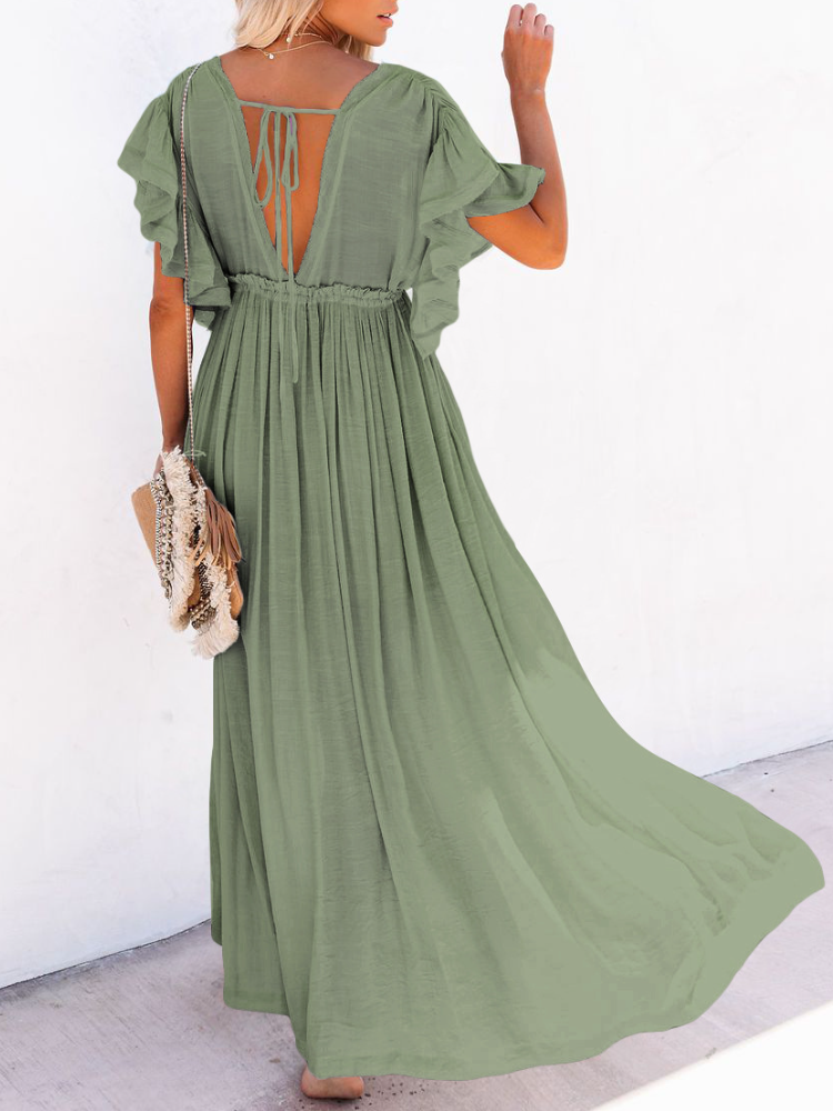 Bamboo Waist Rope Kaftan Long Dress Cardigan Holiday Beach Sun-protective Long Dress