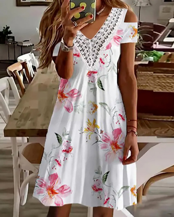 Casual Lace Stitching V-neck Mini Dress