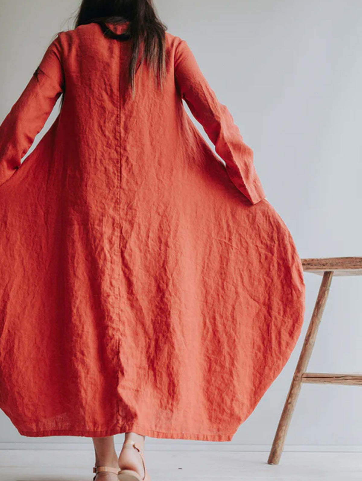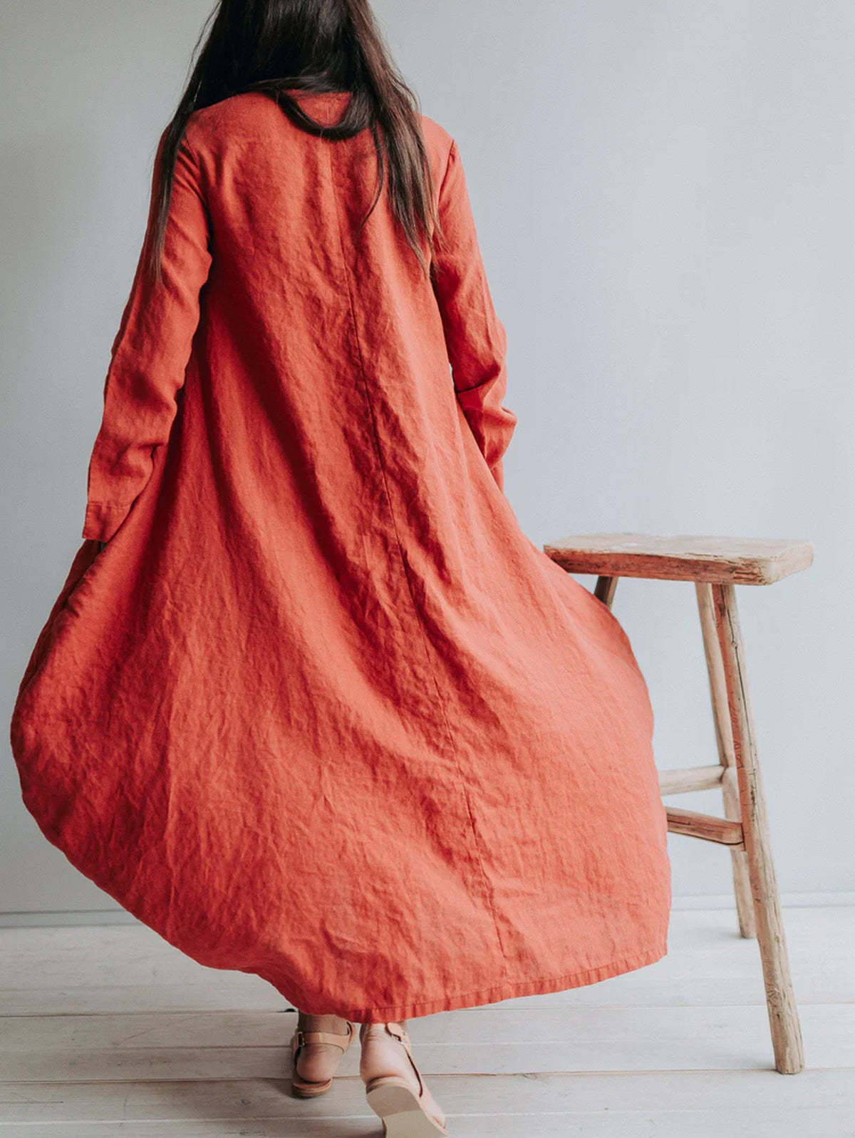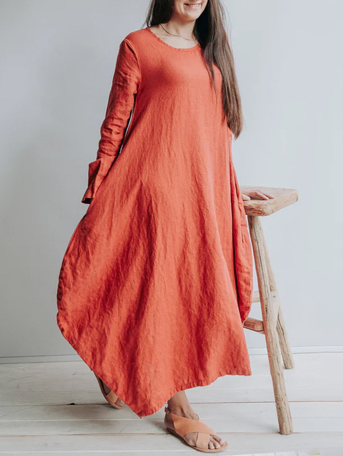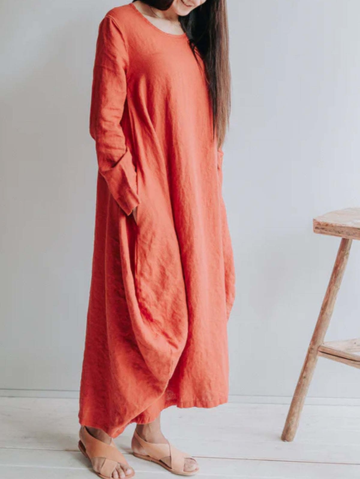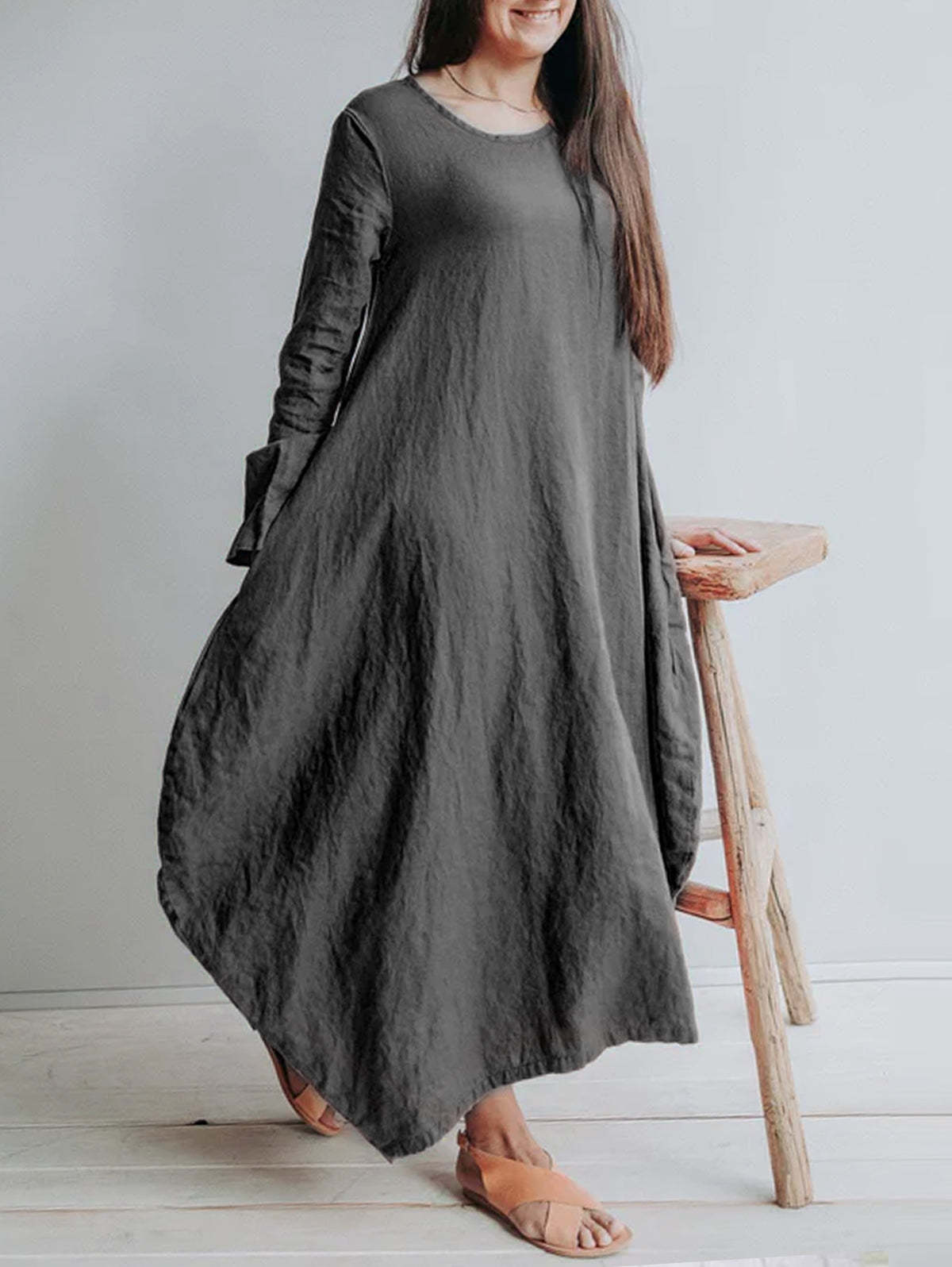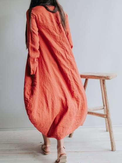 Classic Solid Round Neck Linen Maxi Dress