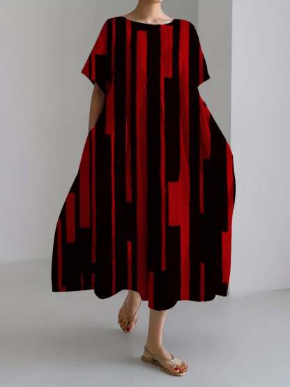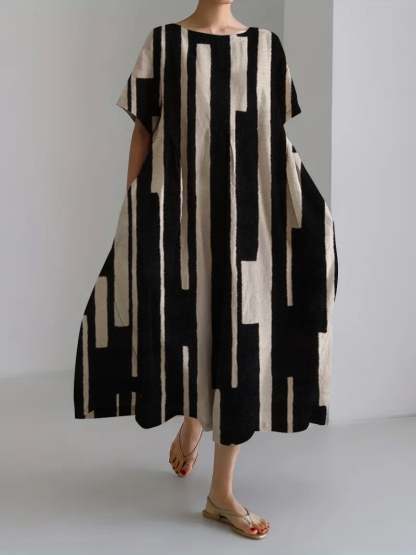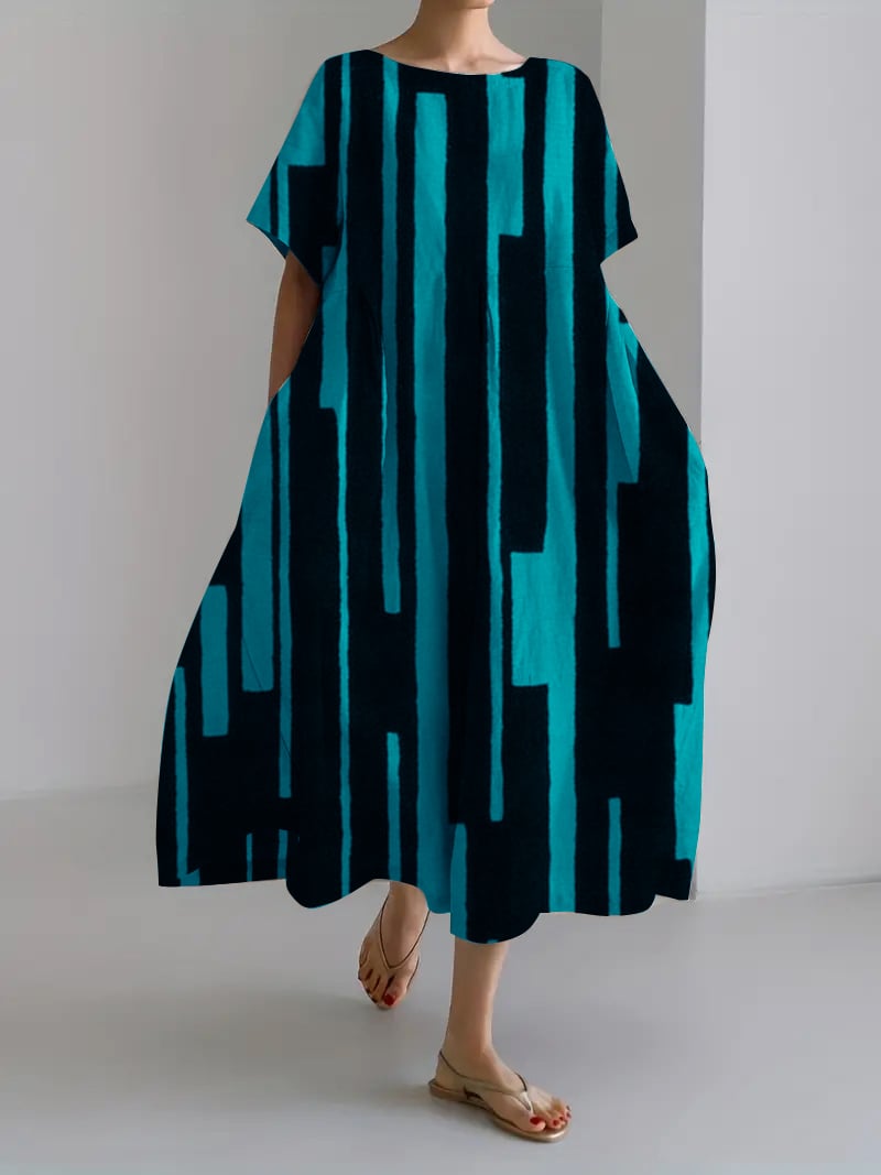 Ladies Retro Geometric Irregular Design Casual Loose Dress