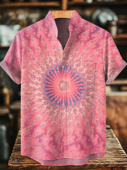 Men's Retro Colorful Kaleidoscope Print Casual Short Sleeve 100% Cotton Shirt