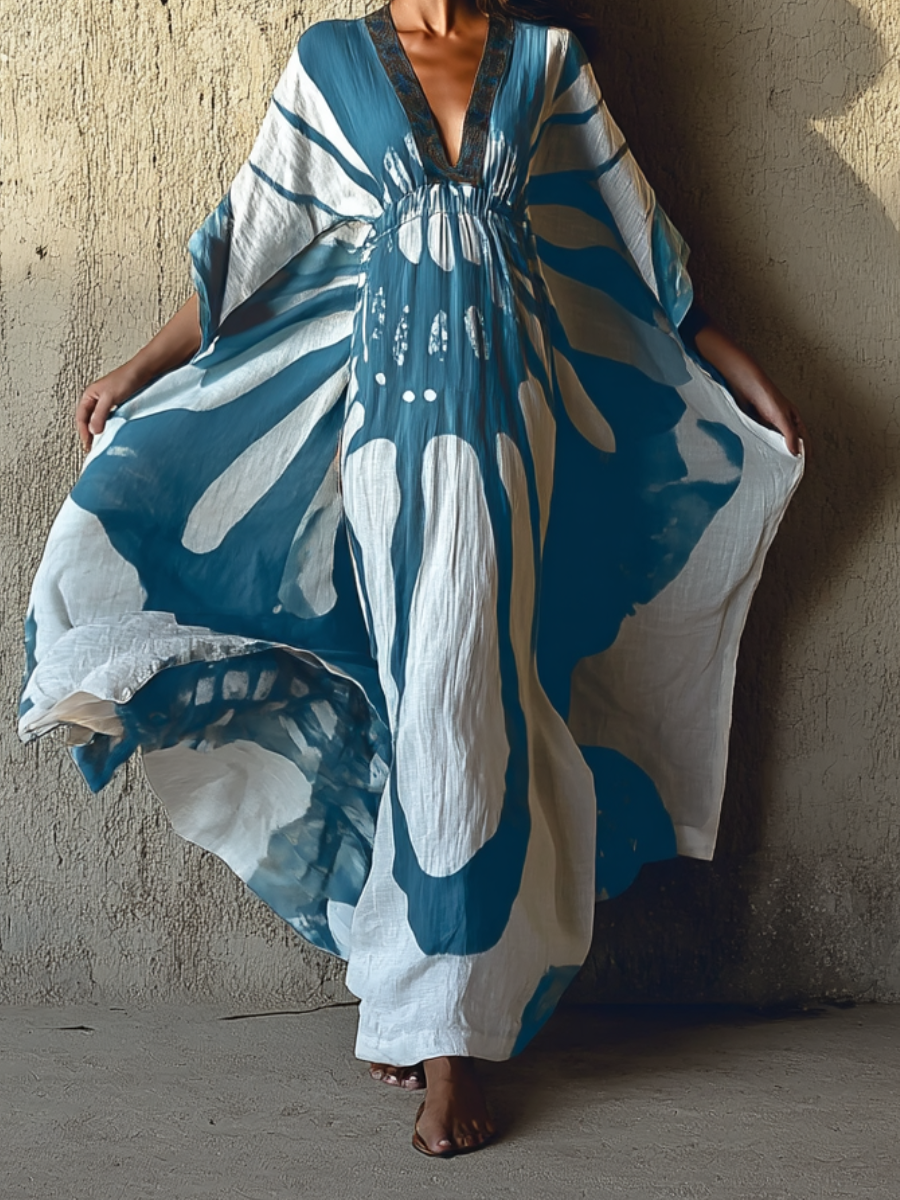 Ming Blue Porcelain Linen Kaftan