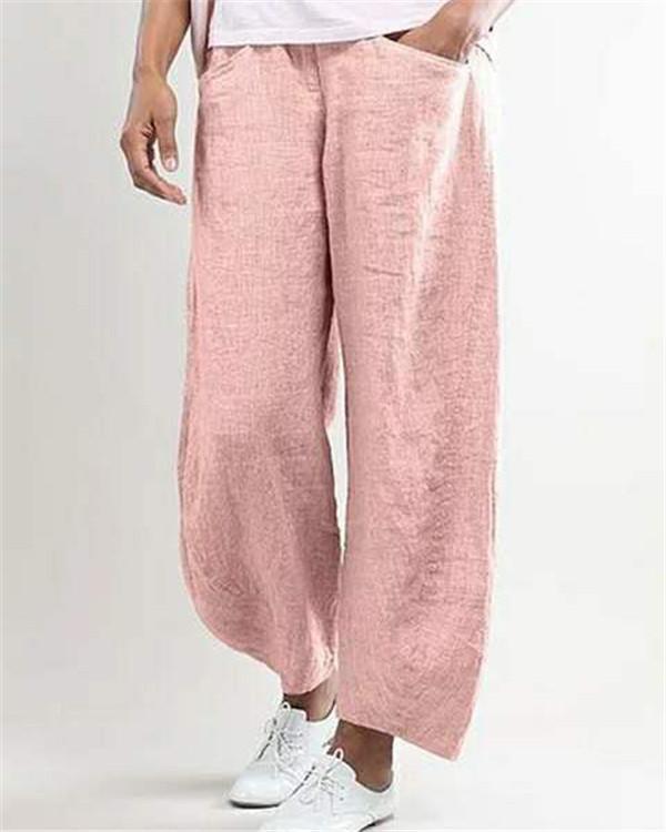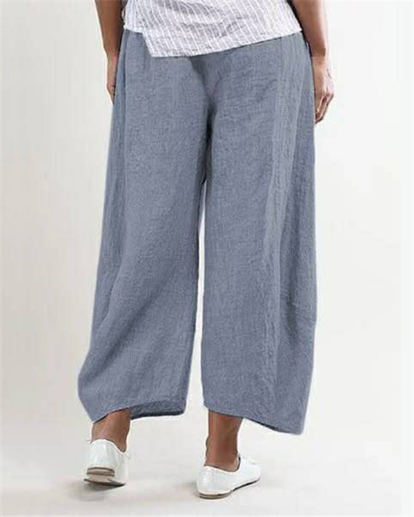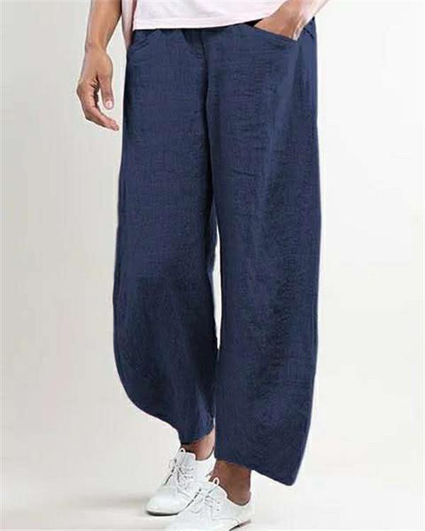 Women Plus Size Casual Wide Leg Shift Cotton Pockets Solid Pants