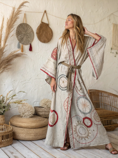 Premium Cotton and Linen Fabric: Made from premium cotton and linen, this women's robe has a soft, lightweight feel, making it the perfect choice for elegant wear all year round while adding a touch of sophistication to your wardrobe.