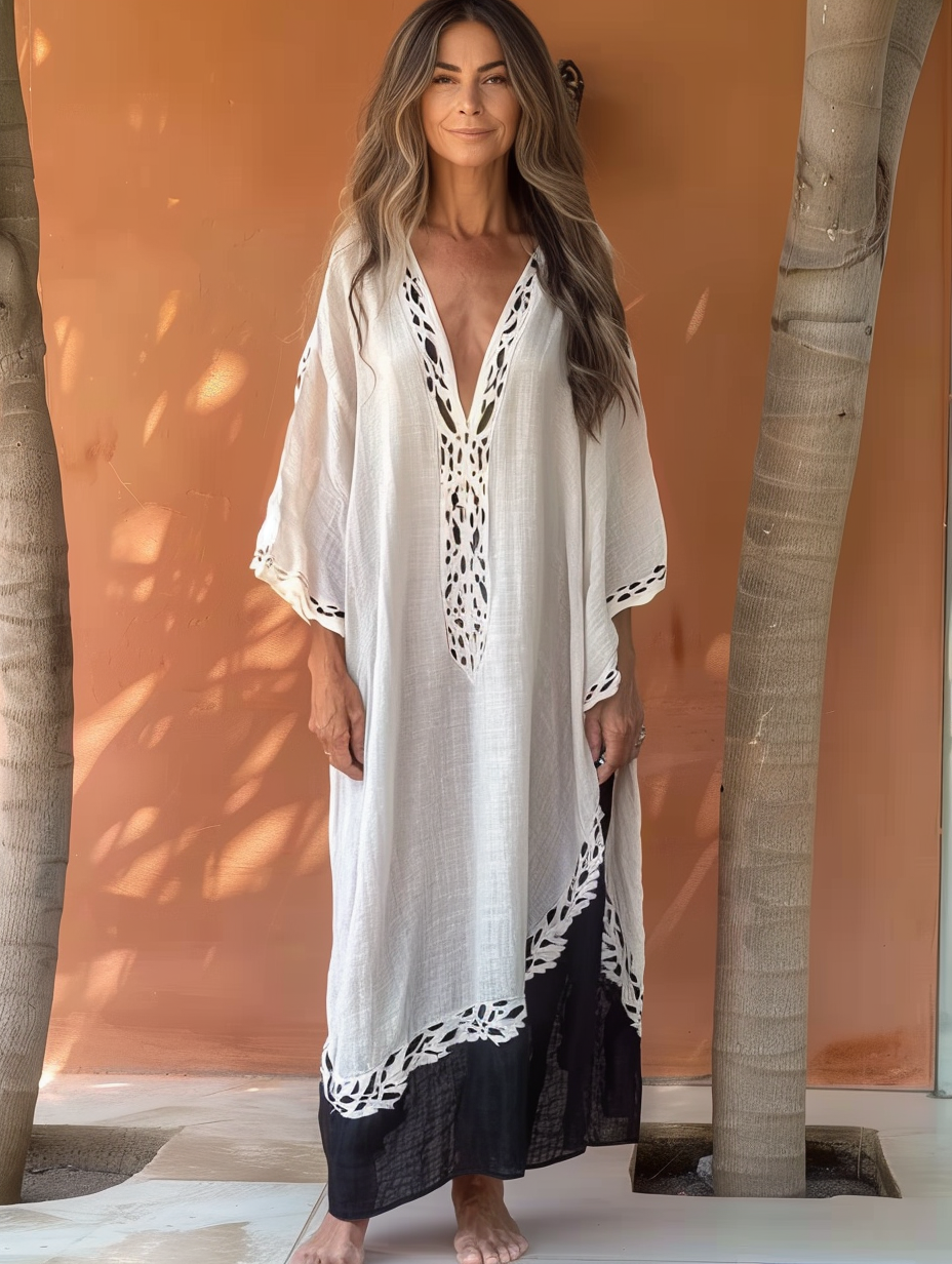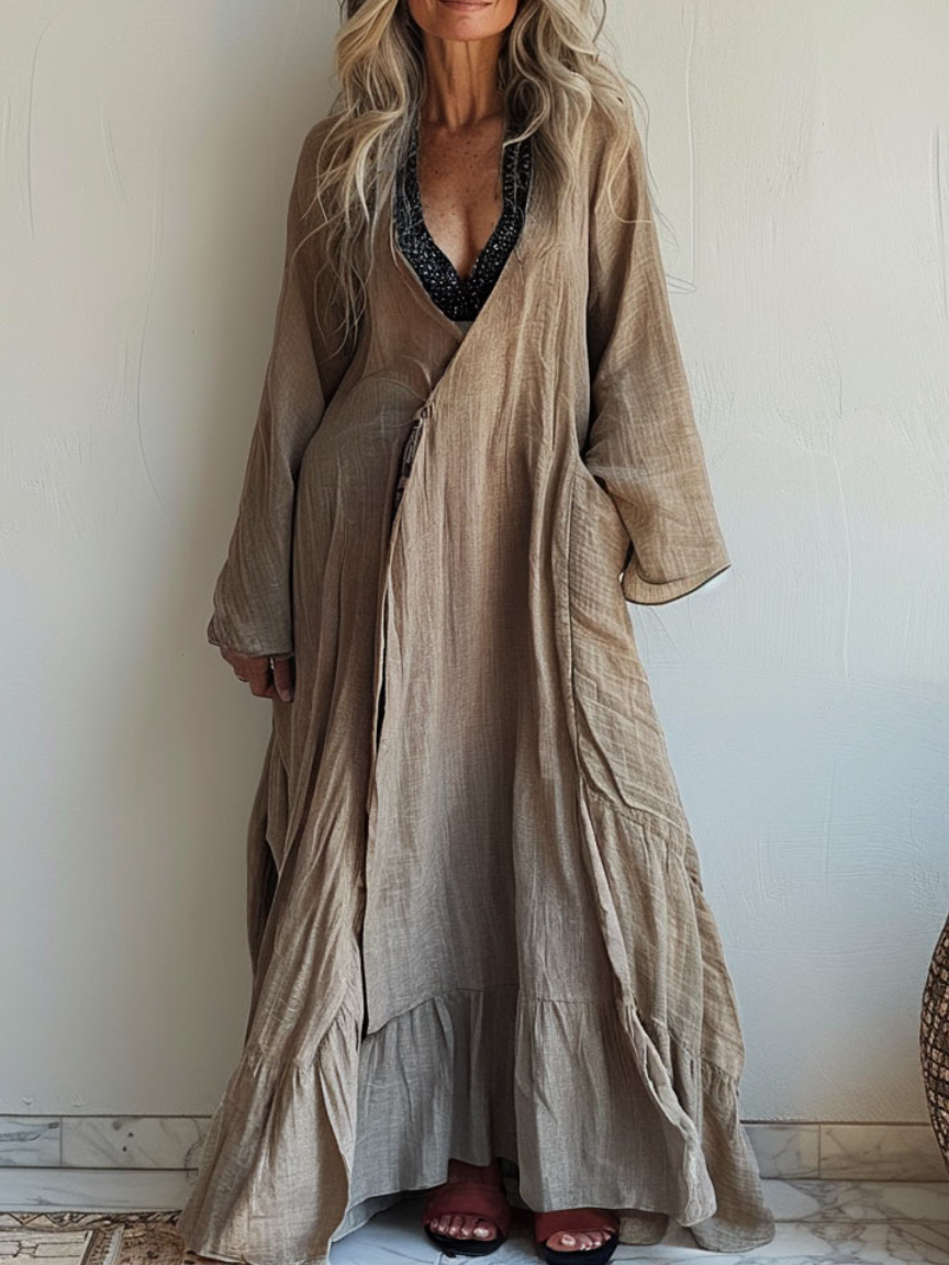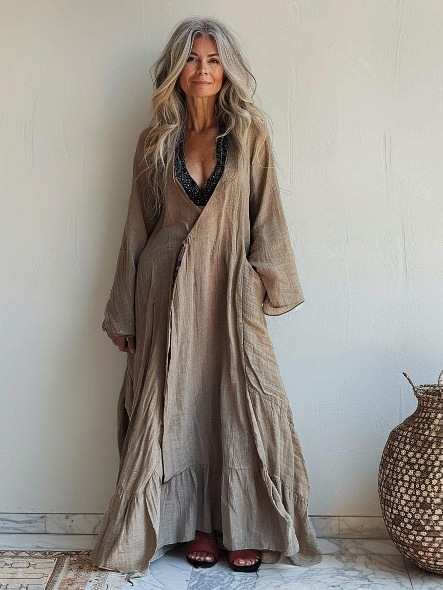 Contton & Linen Long Sleeve Kaftan Maxi Dress