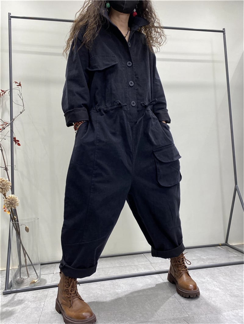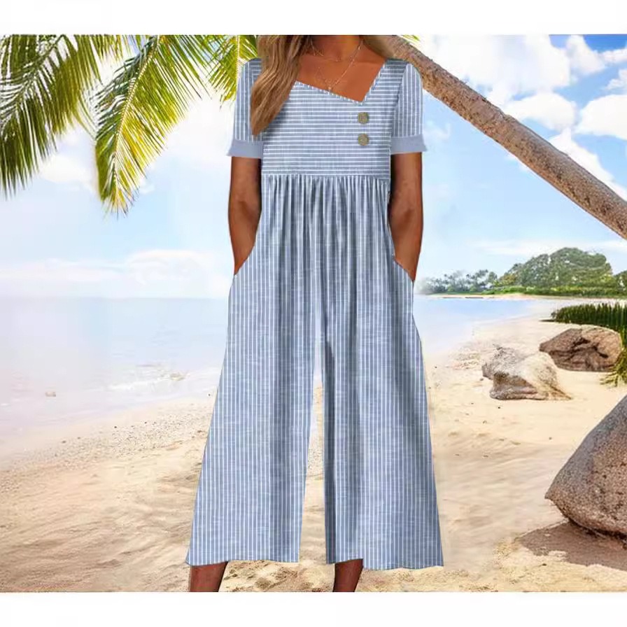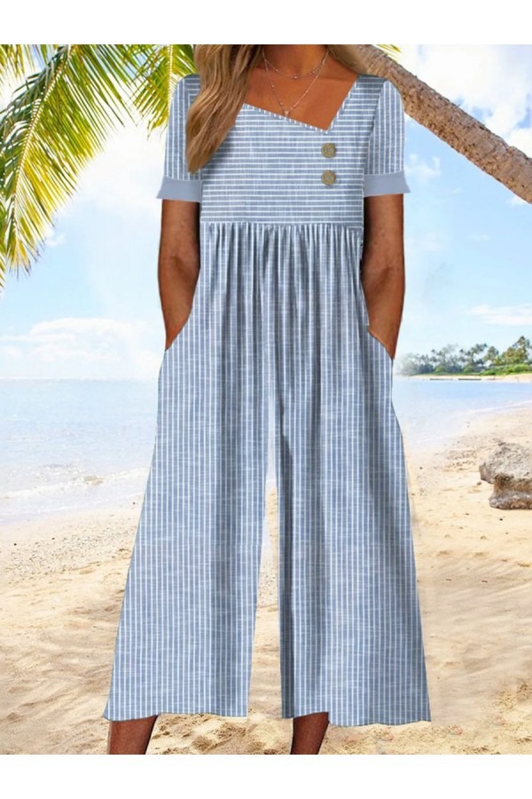 Women's Retro Striped Pockets And Buttons Casual Jumpsuit