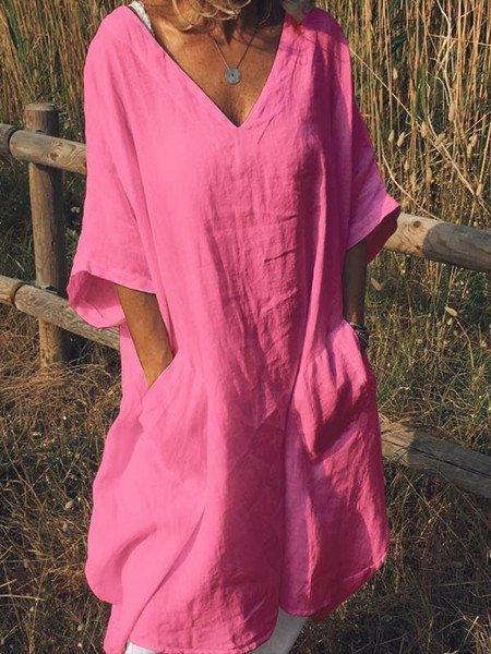 Plus Size Casual V Neck Half Sleeve Pockets Dresses