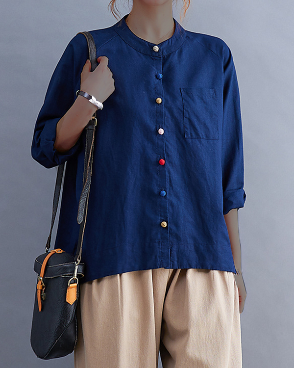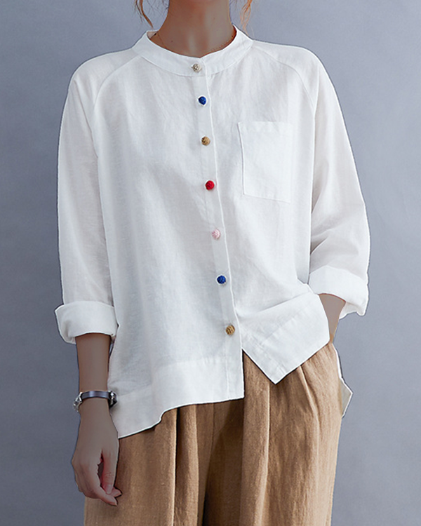 Vintage Cotton and Linen Chic Long-sleeved Button-down Loose Shirt
