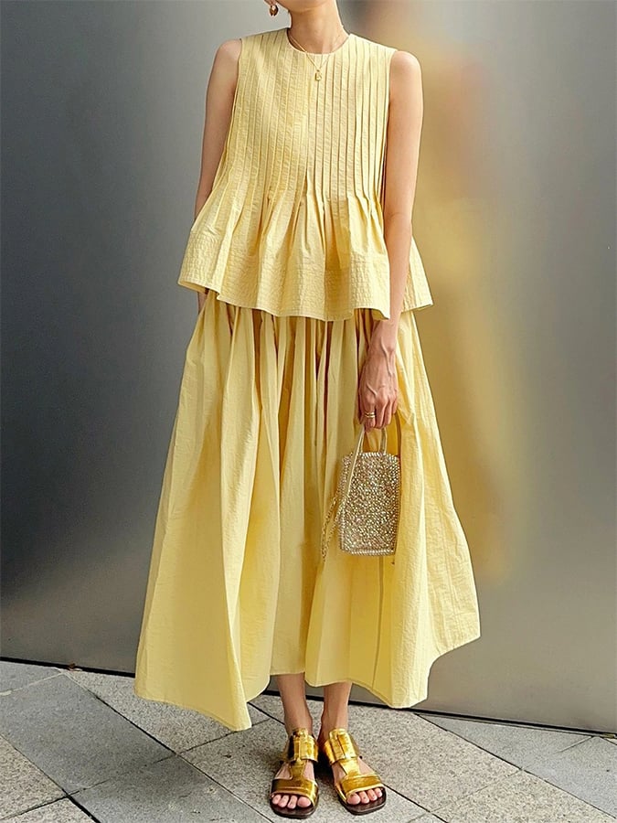 Women's Pleated Solid Color Casual Cotton And Linen Tops