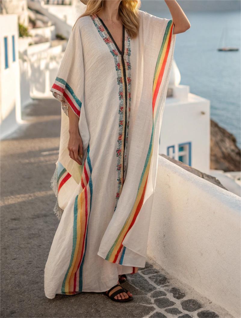 Linen Boho Stylish Printed Kaftan Maxi Dress