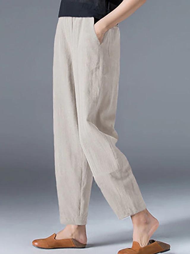 Women's Slacks Baggy Cropped Ankle-Length Linen Pocket Elastic Mid Waist Pants