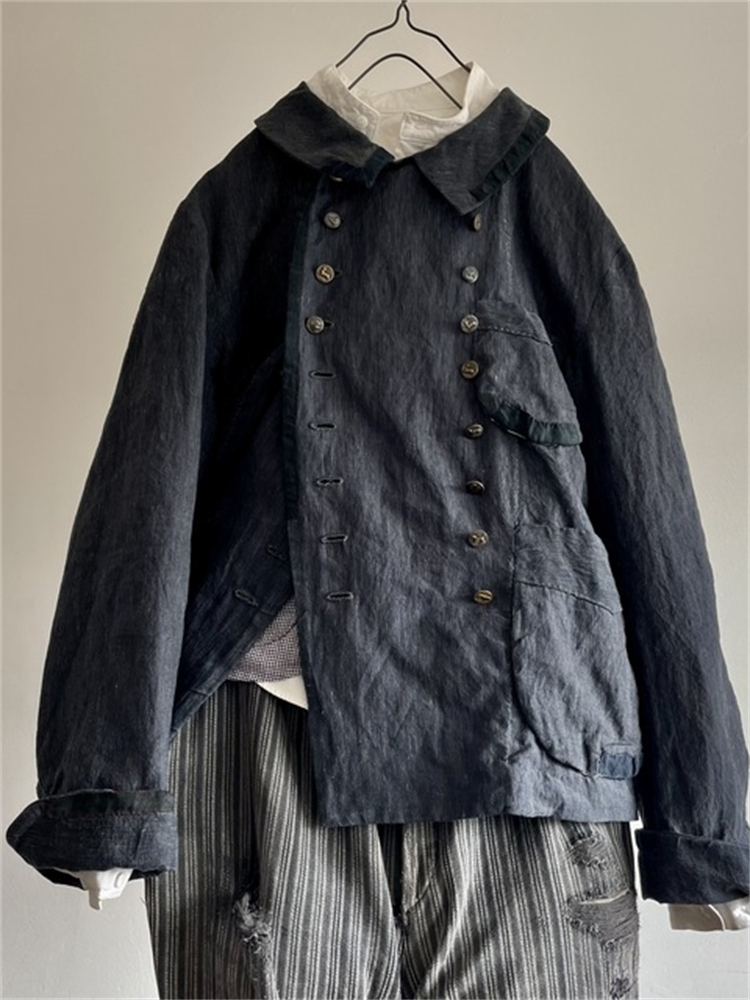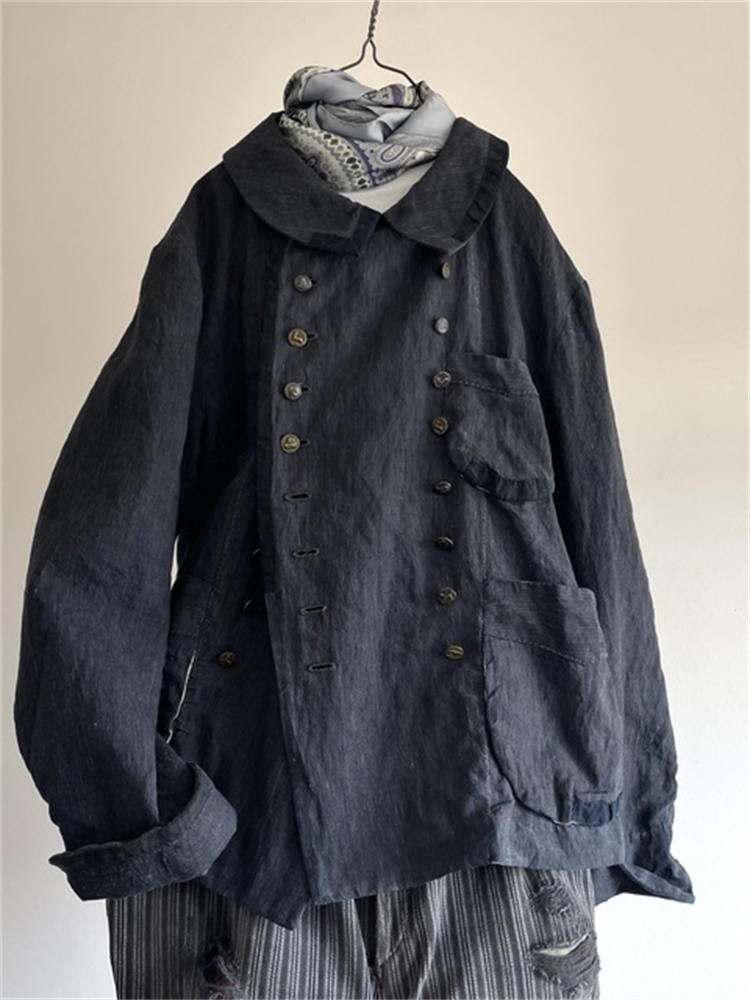Vintage Multi Pockets Double Breasted Linen Blend Jacket