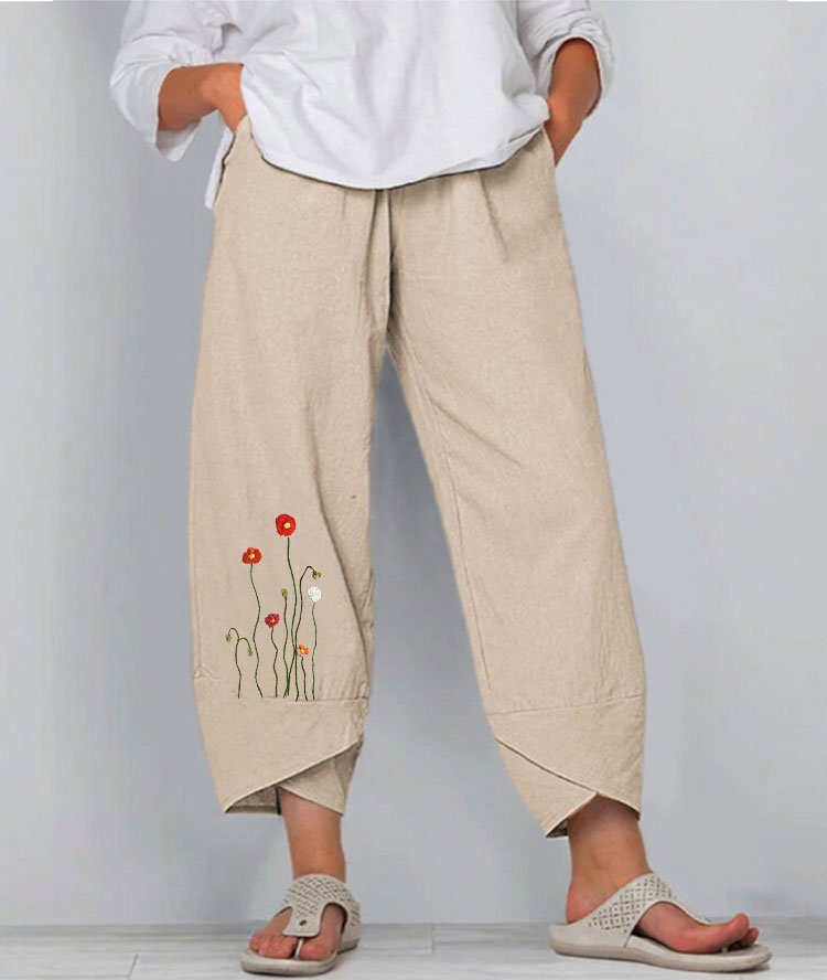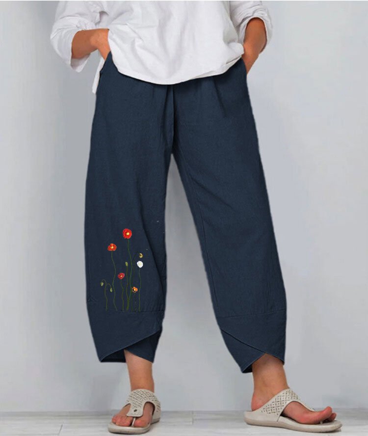 Women's Cotton Linen Simple Loose Casual Ninth Pants