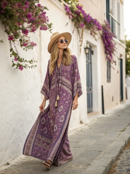 Contton & Linen Long Sleeve Kaftan Maxi Dress