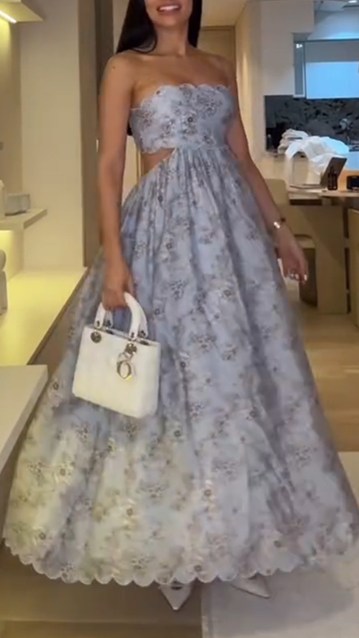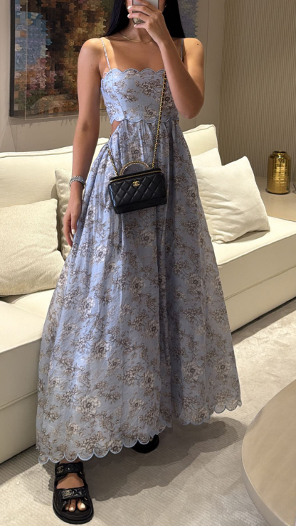 This stunning floral print wave-adorned cut-out back mesh maxi dress is a dreamy blend of romance and edge. Delicate blossoms cascade across the lightweight fabric, creating a soft yet striking visual effect. The asymmetrical wave detailing along the hem adds playful movement with every step, while the strategically placed cut-outs at the back reveal just the right amount of skin for a sensual touch. The sheer mesh overlay creates subtle dimension, allowing glimpses of skin beneath for an alluring effect. Designed to flatter the figure, the dress features a fitted bodice that flows into an effortlessly elegant skirt. Perfect for garden parties or summer soirées, this statement piece transitions beautifully from day to night. The breathable fabric ensures comfort without compromising style, making it ideal for warm-weather occasions. With its unique combination of feminine florals and daring cut-out details, this dress offers the perfect balance between sweet and seductive. The versatile design pairs equally well with strappy sandals for a casual look or heels for evening glamour.