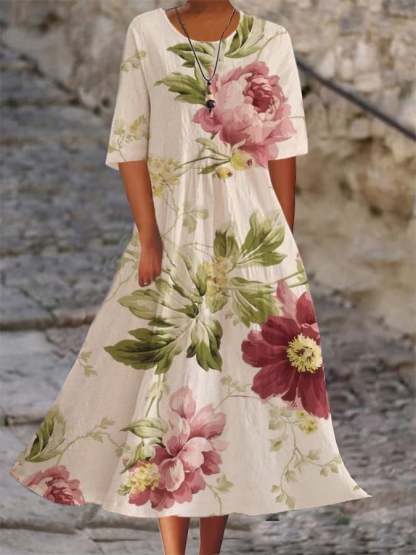 Ladies Botanical Floral Design Casual Loose Dress