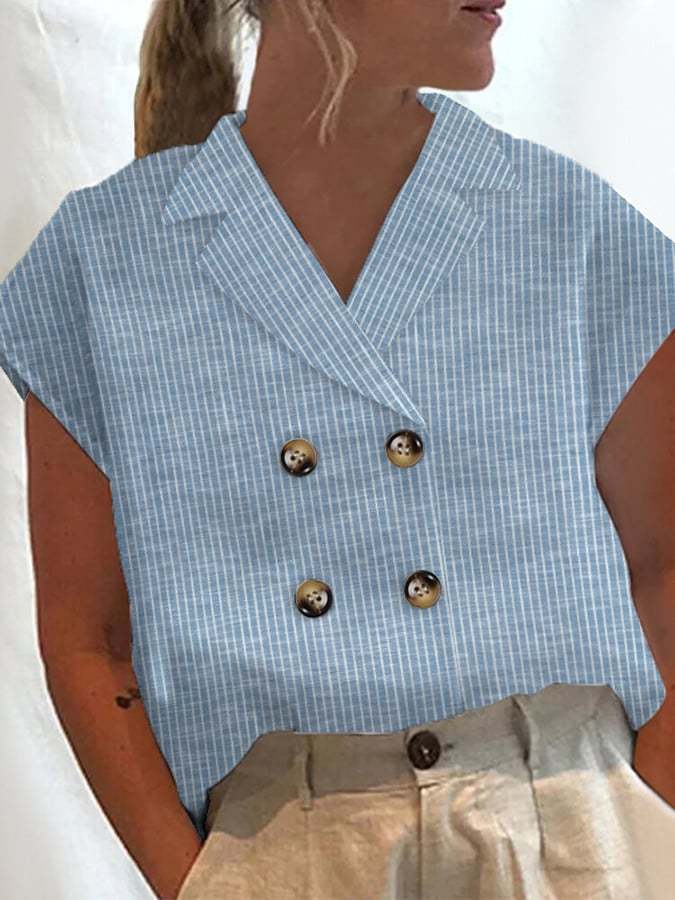 Women's Classic Retro Striped Suit Collar Loose Casual Shirt