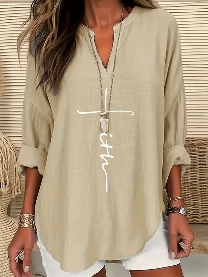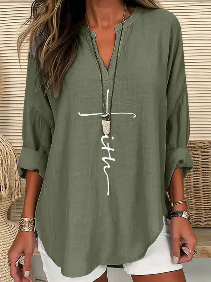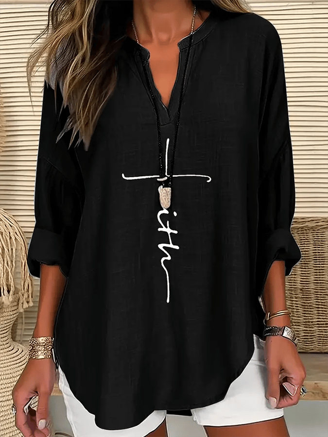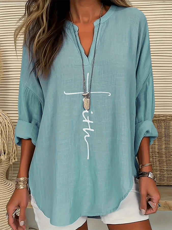 Women's Faith Printed Loose Casual Long Sleeve V-Neck Top