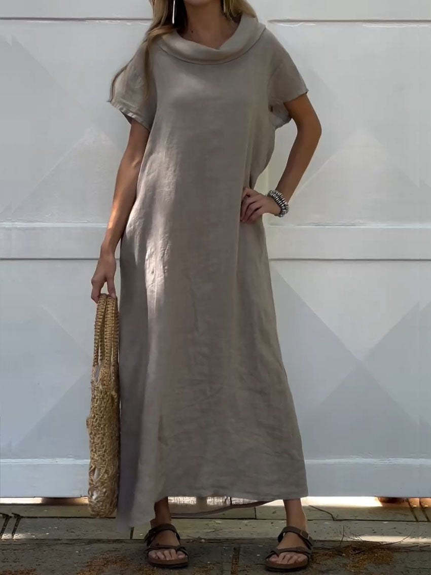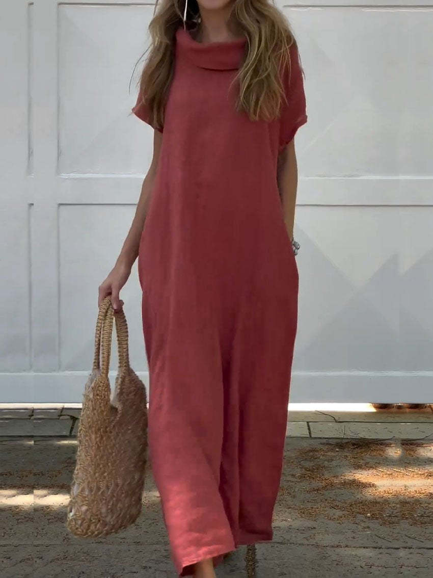 Women's Turndown Collar Linen Pocket Dress