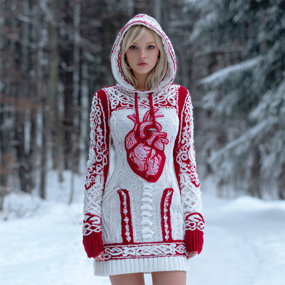 Halloween Anatomy Art Women's Knit Hooded Sweater Mini Dress