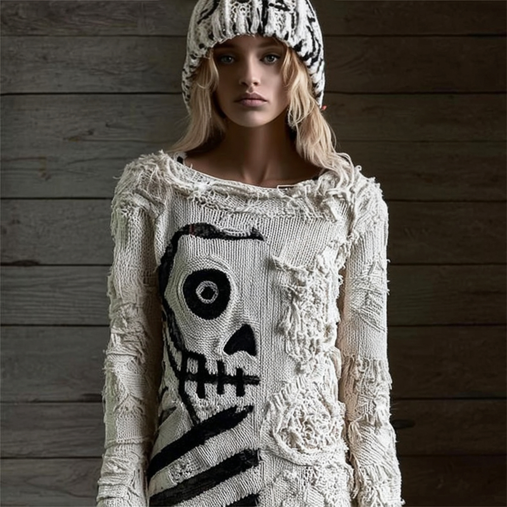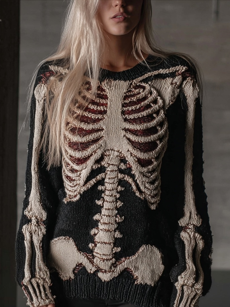 Vintage Halloween Skeleton Art Knit Comfy Sweater