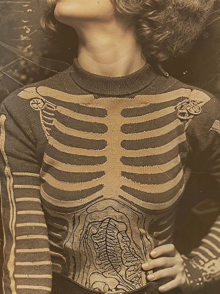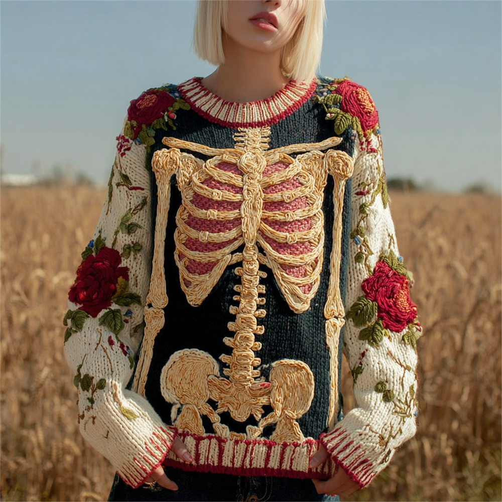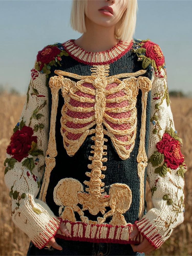 Vintage Halloween Anatomy Art Rose Jacquard Knitted Sweater