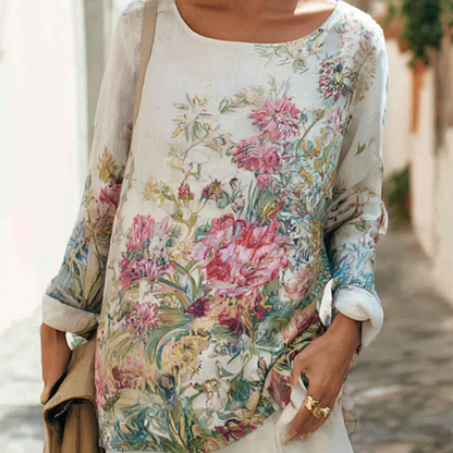 Bohemian Style Plant And Flower Elements Cotton And Linen Material Women's Shirt