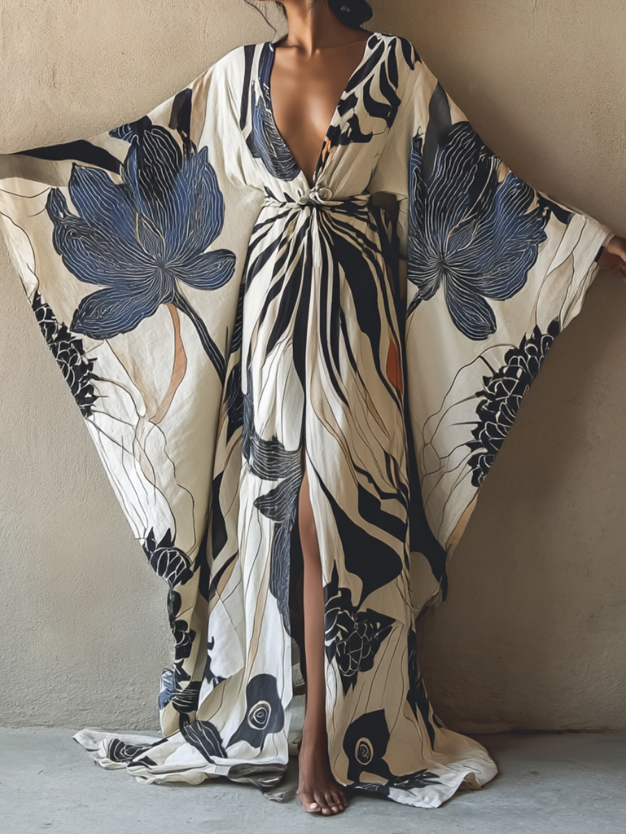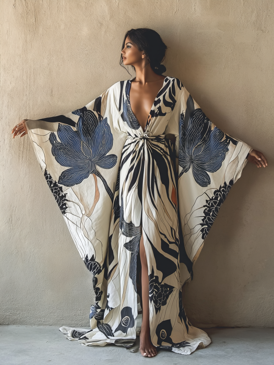 Chic Design: Features traditional kimono-inspired sleeves and a graceful silhouette with a matching belt for a flattering fit.