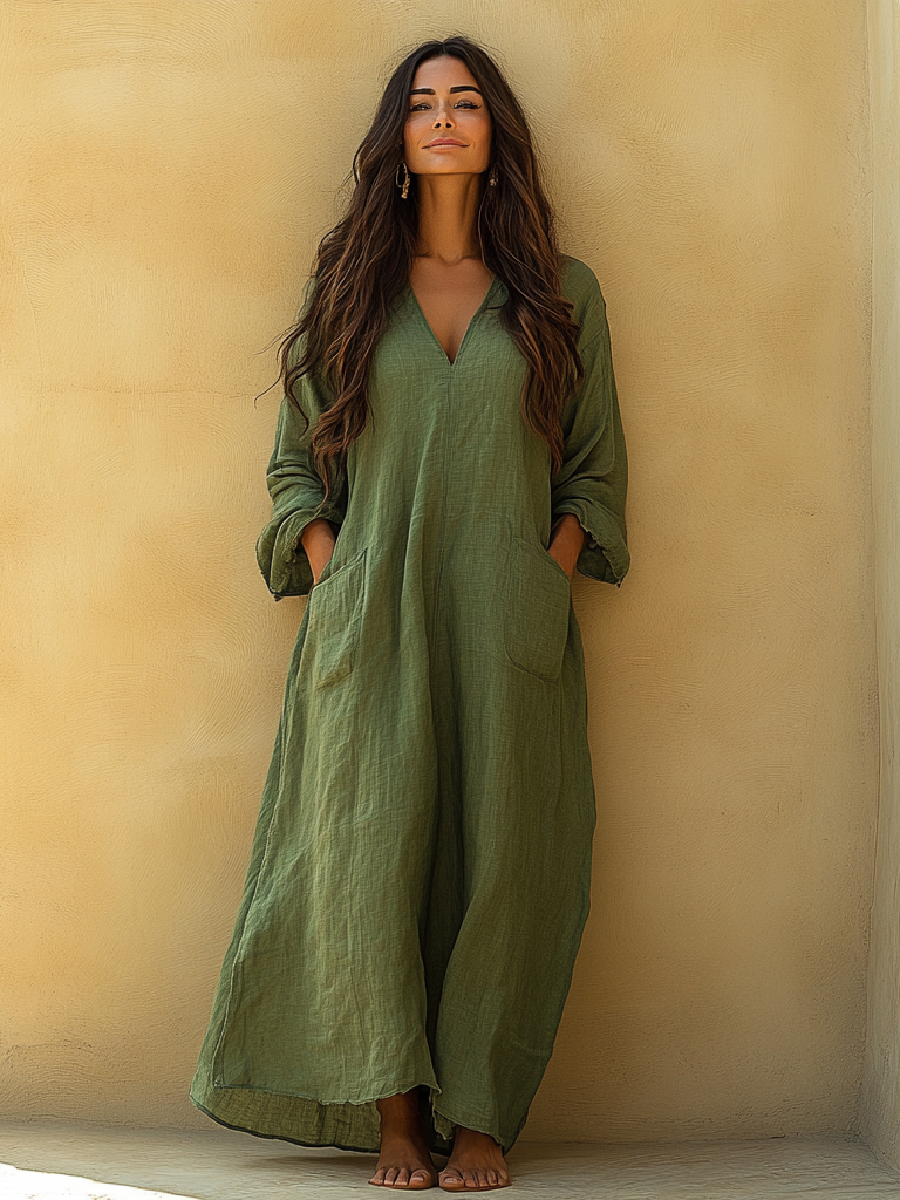 Elegant Women's Cotton-Linen Kaftan – Breathable & Stylish