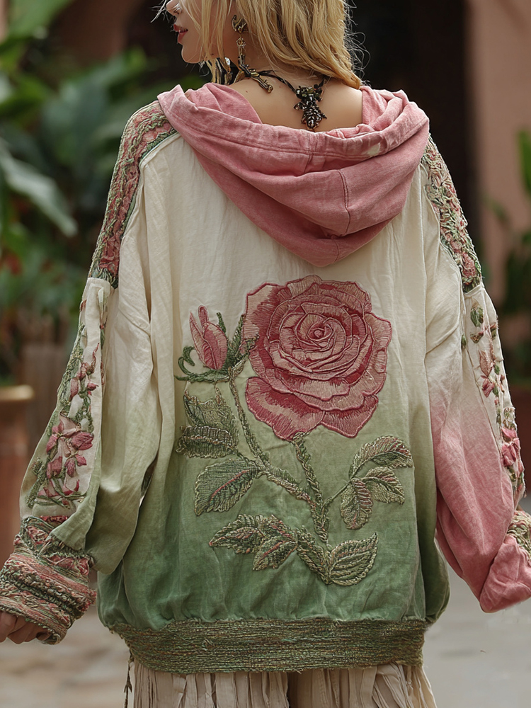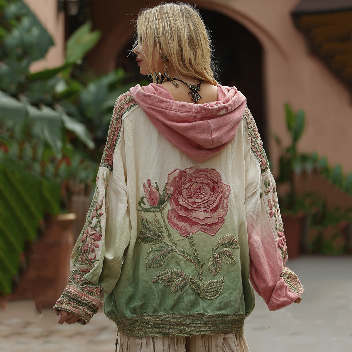 Love & Health Collection Vintage Rose And Floral Art Linen Long Sleeve Hoodie