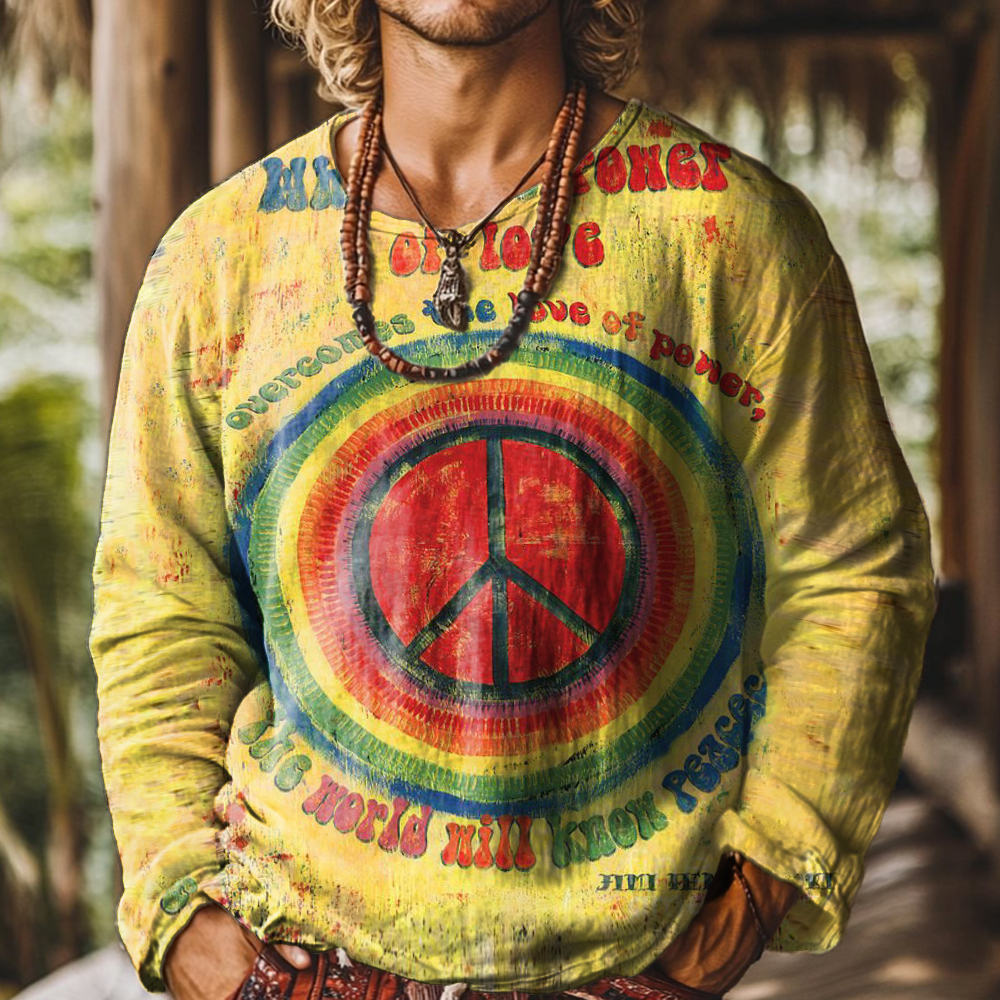 Men's Art Painting Colorful Hippie Retro Print Round Neck Long Sleeve