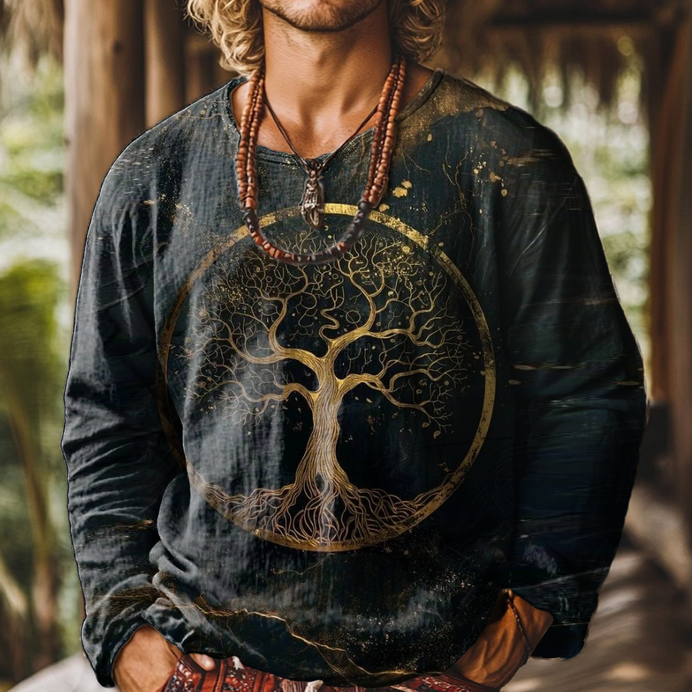 Men's Art Painting Tree of Life Ethnic Style Printed Round Neck Long Sleeve