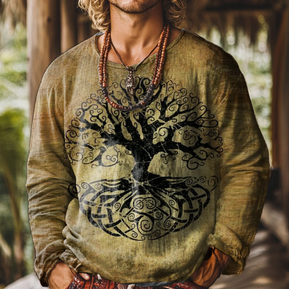 Men's Art Painting Tree of Life Vintage Print Round Neck Long Sleeve