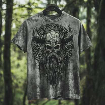 Men's Viking Celtic Knot Embroidery Vintage Print Crew Neck T-Shirt