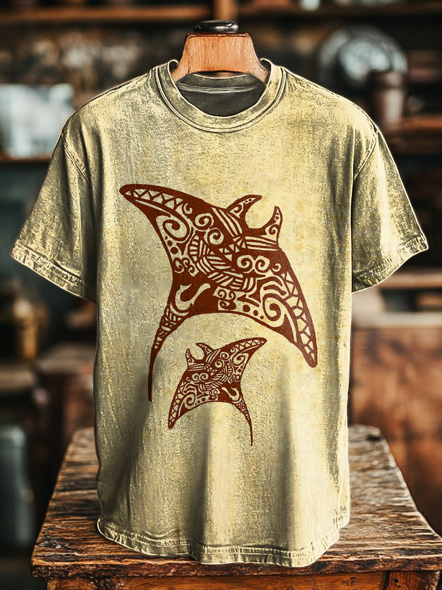 Unisex Art Painting Ethnic Style Manta Ray Printed Round Neck T-Shirt