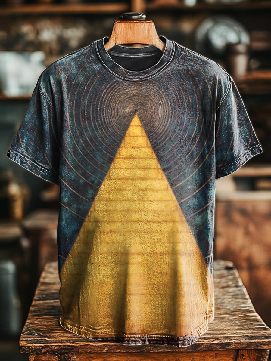 Unisex Art Painting Ethnic Style Pyramid Printed Round Neck T-Shirt