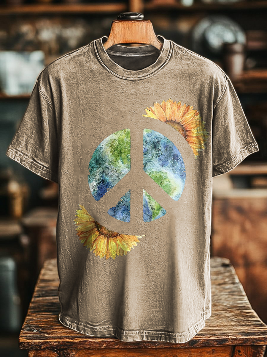 Unisex Art Painting Hippie Sunflower Earth Print Short Sleeve T-Shirt