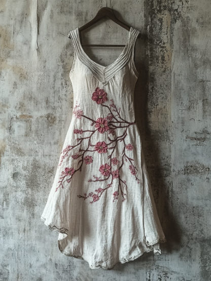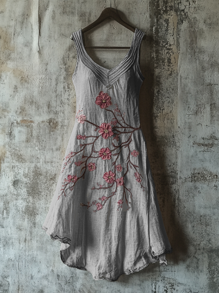 Vintage Celtic Knot With Cherry Blossoms Pattern Linen Tank Dress