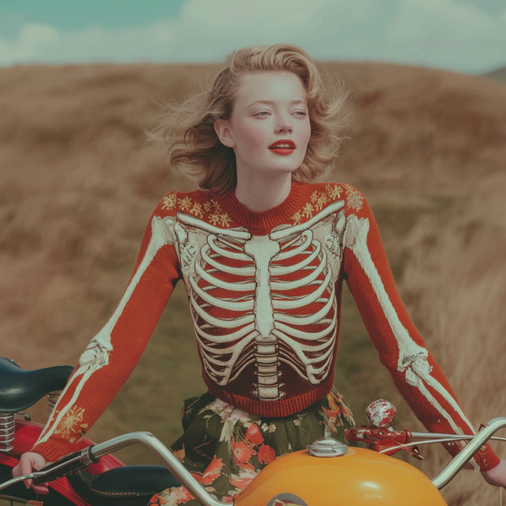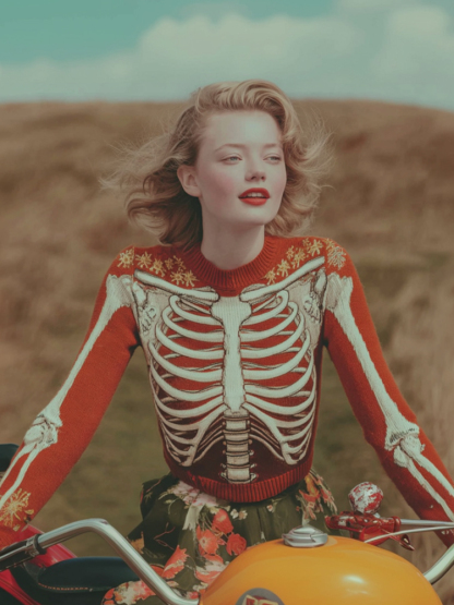 Vintage Halloween Anatomy Art And Flower Round Neck Sweater