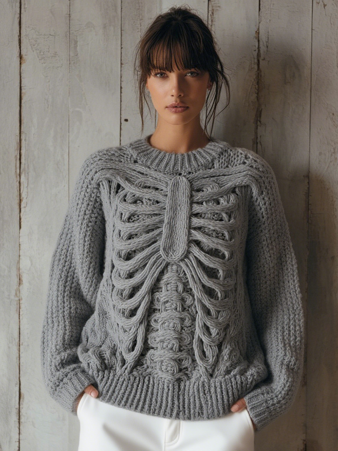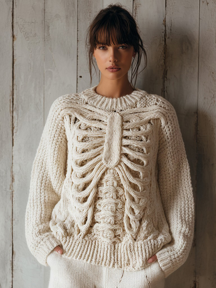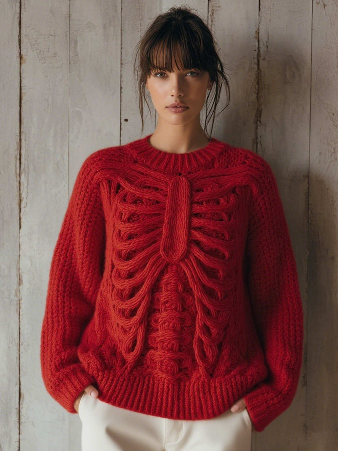 Vintage Halloween Anatomy Art Chunky Knitted Sweater