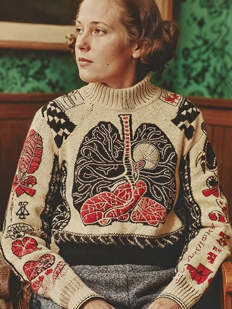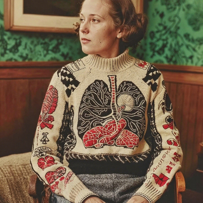 Vintage Halloween Human Anatomy Art Chunky Knitted Sweater