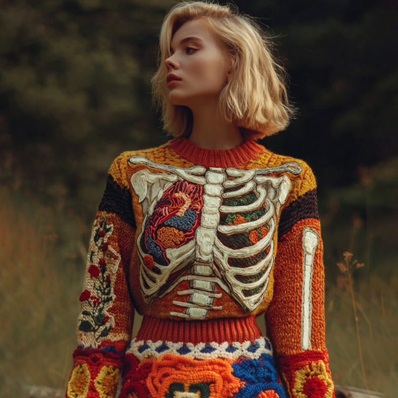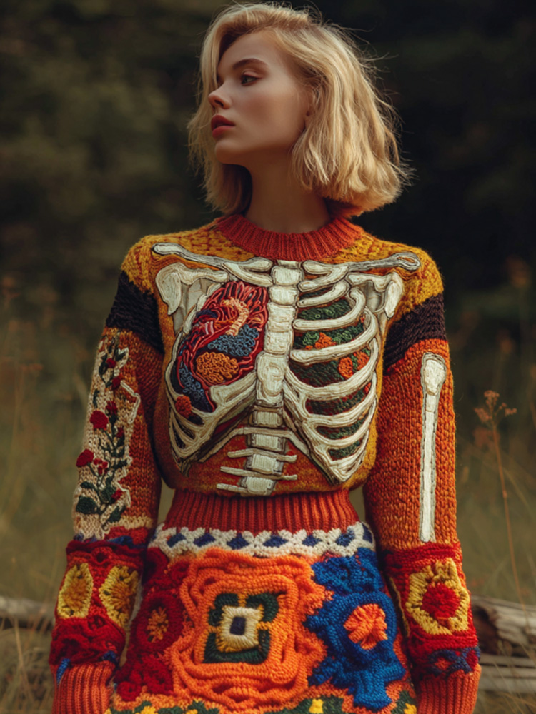 Vintage Halloween Human Anatomy Art Sense Thick Needle Round Neck Sweater
