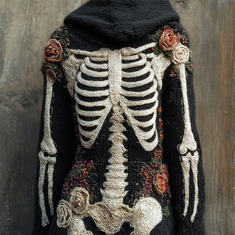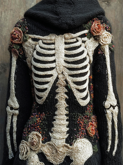 Vintage Skeleton Anatomy Floral Hooded Cozy Knit Sweater