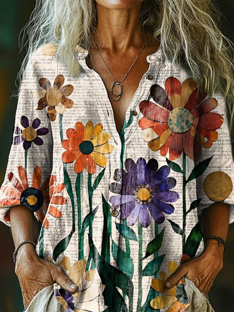 Women's Artistic Floral Gradient Print Long Sleeve Shirt