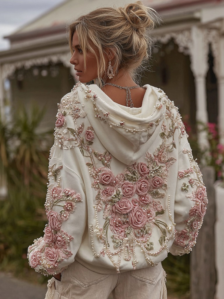 Women's Bohemian Floral Embroidered Casual Hoodie