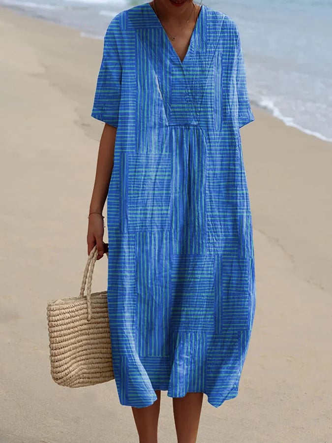 Women's casual cotton and linen printed dress