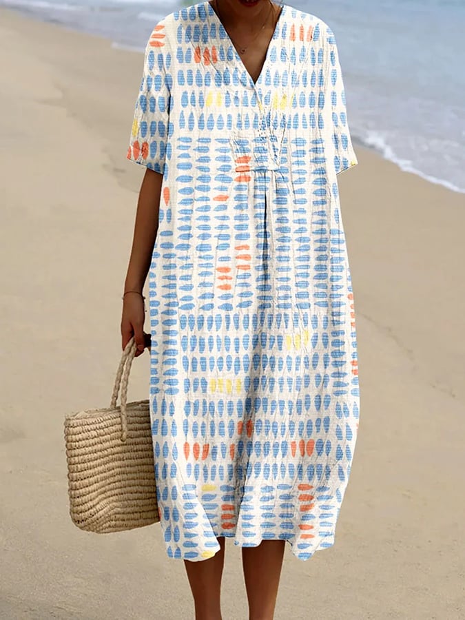 Women's casual cotton and linen printed dress